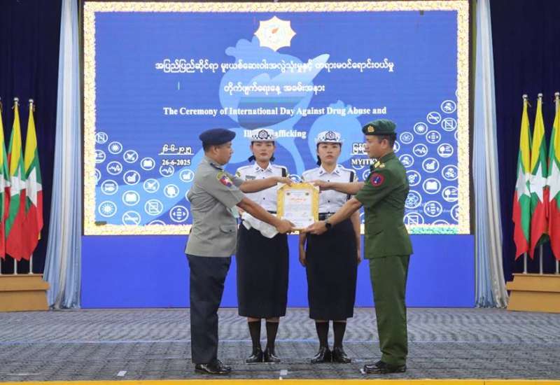 အပြည်ပြည်ဆိုင်ရာ မူးယစ်ဆေးဝါးအလွဲသုံးမှုနှင့် တရားမဝင်ရောင်းဝယ်မှုတိုက်ဖျက်ရေးနေ့ အထိမ်းအမှတ်အခမ်းအနားများကို ယနေ့တွင် နေပြည်တော်ကောင်စီနယ်မြေ၊ တိုင်းဒေသကြီး/ ပြည်နယ်များတွင် ကျင်းပပြီး တောင်ကြီး၊ ရန်ကုန်နှင့် မန္တလေးမြို့တို့တွင် တစ်နှစ်တာကာလအတွင်း ဖမ်းဆီးရမိမူးယစ်ဆေးဝါးများ၊ ဓာတုပစ္စည်းများ ဖျက်ဆီးခြင်းကို ကျန်းမာရေးဝန်ကြီးဌာနမှ ထုတ်ပြန်ထားသည့် ကိုဗစ်-၁၉ ရောဂါဆိုင်ရာ ညွှန်ကြားချက်များနှင့်အညီ ကျင်းပကာ မူးယစ်ဆေးဝါးတားဆီးနှိမ်နင်းရေးလုပ်ငန်းများတွင် ထူးချွန်စွာ စွမ်းစွမ်းတမံဆောင်ရွက်ခဲ့ကြသူများကို ဆုများချီးမြှင့်ကြသည်။