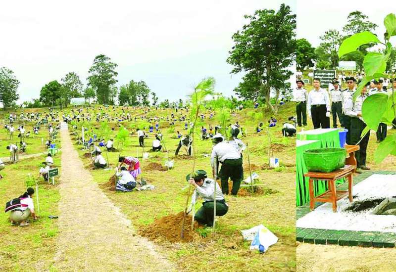 သယံဇာတနှင့်သဘာဝပတ်ဝန်းကျင်ထိန်းသိမ်းရေးဝန်ကြီးဌာန ၂၀၂၅ ခုနှစ် မိုးရာသီ ပထမအကြိမ် စုပေါင်းသစ်ပင်စိုက်ပျိုးပွဲကို ယနေ့နံနက်ပိုင်းတွင် ပြည်ထောင်စုနယ်မြေ နေပြည်တော် ဒက္ခိဏသီရိမြို့နယ် ရန်အောင်မြင်ကြိုးဝိုင်း အကွက်အမှတ်-၁၄ ၌ကျင်းပရာ ပြည်ထောင်စုဝန်ကြီး ဦးခင်မောင်ရီ၊ ဒုတိယဝန်ကြီး ဦးမင်းသူ၊ အမြဲတမ်းအတွင်းဝန်နှင့် ဌာနဆိုင်ရာ တာဝန်ရှိသူများ၊ ဝန်ကြီးဌာနမှ အရာထမ်းအမှုထမ်းများ၊ သစ်တောနှင့် ပတ်ဝန်းကျင်ဆိုင်ရာတက္ကသိုလ်မှ ဆရာ ဆရာမများနှင့် ကျောင်းသား ကျောင်းသူများ တက်ရောက်သည်။