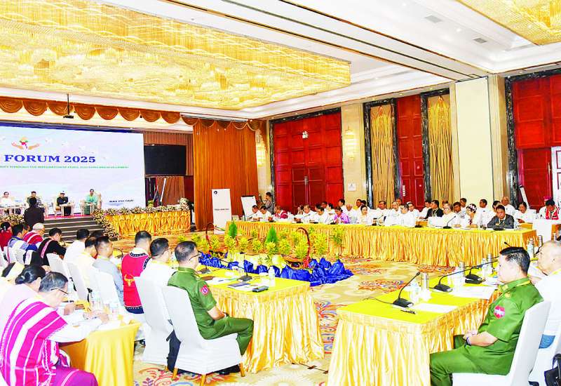 “ငြိမ်းချမ်းရေး၊ ရွေးကောက်ပွဲနှင့် ဖက်ဒရယ်စနစ်တို့ ပေါင်းစည်းခြင်းမှ အေးချမ်းသာယာဝပြောသည့် နိုင်ငံတော်သစ်ဆီသို့သုံးသပ်ဆွေးနွေးပွဲ” ငြိမ်းချမ်းရေးဖိုရမ် - Peace Forum 2025 ကို ယနေ့နံနက်ပိုင်းတွင် နေပြည်တော်ရှိ မင်္ဂလာသီရိဟိုတယ်ခန်းမ၌ ဒုတိယနေ့အဖြစ် ဆက်လက်ကျင်းပသည်။