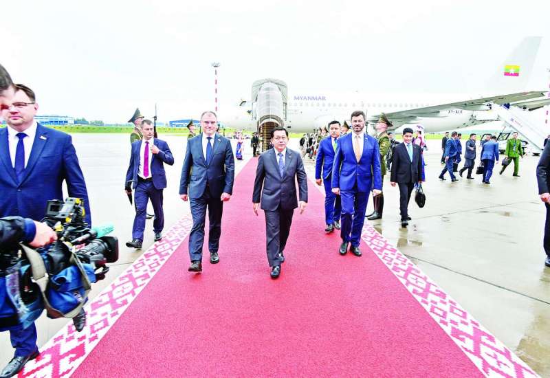 EAEU ၏အလှည့်ကျဥက္ကဋ္ဌဖြစ်သည့် ဘယ်လာရုစ်သမ္မတနိုင်ငံသမ္မတ H.E. Mr. Alexander Grigoryevich Lukashenko ၏ ဖိတ်ကြားချက်အရ မင့်စ်မြို့၌ ကျင်းပပြုလုပ်မည့် စတုတ္ထအကြိမ် ဥရောပ-အာရှစီးပွားရေးဖိုရမ်(EEF 2025)သို့ တက်ရောက်ရန်အတွက် နိုင်ငံတော်စီမံအုပ်ချုပ်ရေးကောင်စီဥက္ကဋ္ဌ နိုင်ငံတော်ဝန်ကြီးချုပ် ဗိုလ်ချုပ်မှူးကြီးမင်းအောင်လှိုင် ဦးဆောင်သည့် မြန်မာအဆင့်မြင့်ကိုယ်စားလှယ်အဖွဲ့သည် ယနေ့နံနက်ပိုင်းတွင် အထူးလေယာဉ်ဖြင့် နေပြည်တော် တပ်မတော်လေဆိပ်မှ ထွက်ခွာသည်။