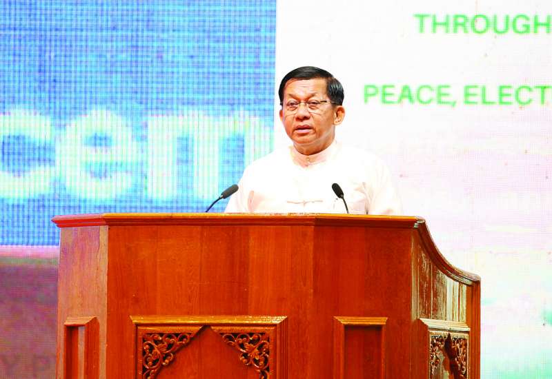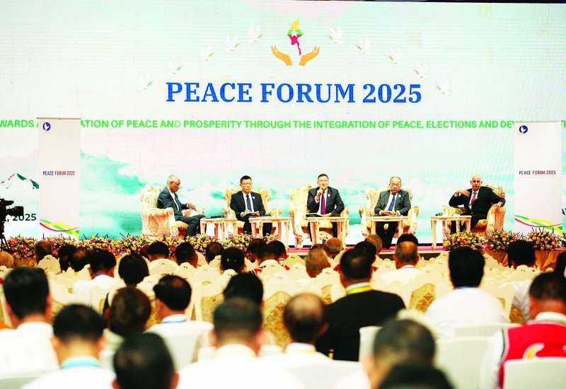 ငြိမ်းချမ်းရေးဖိုရမ် - Peace Forum 2025 “ငြိမ်းချမ်းရေး၊ ရွေးကောက်ပွဲနှင့် ဖက်ဒရယ်စနစ်တို့ပေါင်းစည်းခြင်းမှ အေးချမ်းသာယာဝပြောသည့် နိုင်ငံတော်သစ်ဆီသို့” သုံးသပ်ဆွေးနွေးပွဲ ဖွင့်ပွဲအခမ်းအနားကို ဇွန်လ ၂၅ ရက်နေ့က နေပြည်တော် မင်္ဂလာသီရိဟိုတယ်၌ကျင်းပရာ နိုင်ငံတော်စီမံအုပ်ချုပ်ရေးကောင်စီဥက္ကဋ္ဌ နိုင်ငံတော်ဝန်ကြီးချုပ် တပ်မတော်ကာကွယ်ရေးဦးစီးချုပ် အမျိုးသားစည်းလုံးညီညွတ်ရေးနှင့် ငြိမ်းချမ်းရေးဖော်ဆောင်မှုဗဟိုကော်မတီဥက္ကဋ္ဌ ဗိုလ်ချုပ်မှူးကြီး မင်းအောင်လှိုင် တက်ရောက်အမှာစကားပြောကြားခဲ့သည်။
