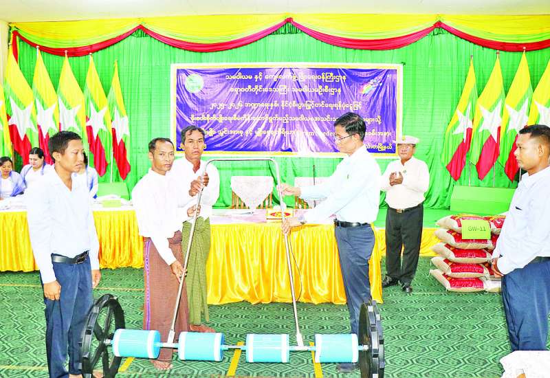 မျိုး၊ မြေဩဇာသွင်းအားစု၊ မျိုးစေ့ချကိရိယာ (Seeder) များနှင့် လက်ဆွဲကောက်စိုက်စက် ပေးအပ်ခြင်း၊ လယ်ယာဝန်ဆောင်မှုအသင်းများနှင့် ချိတ်ဆက် ထွန်ယက်ခြင်းအခမ်းအနားကို ယနေ့နံနက်ပိုင်းတွင် ပဲခူးမြို့ မြို့တော်ခန်းမ၌ကျင်းပရာ သမဝါယမနှင့်ကျေးလက်ဖွံ့ဖြိုးရေးဝန်ကြီးဌာန ပြည်ထောင်စုဝန်ကြီး ဦးလှမိုး၊ ပဲခူးတိုင်းဒေသကြီးဝန်ကြီးချုပ် ဦးမျိုးဆွေဝင်း၊ တိုင်းဒေသကြီးဝန်ကြီးများနှင့် ဌာနဆိုင်ရာ တာဝန်ရှိသူများ တက်ရောက်ကြသည်။