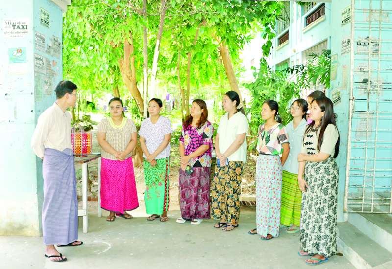 သမဝါယမနှင့်ကျေးလက်ဖွံ့ဖြိုးရေးဝန်ကြီးဌာန ဒုတိယဝန်ကြီး ဦးမြင့်စိုးသည် တာဝန်ရှိသူများနှင့်အတူ ယနေ့မွန်းလွဲပိုင်းတွင် အပြာရောင်အဆင့်သတ်မှတ်ချက်ဖြင့် ဝန်ထမ်းများ ပြန်လည်နေထိုင်လျက်ရှိသော ဝန်ထမ်းအဆောင်များ အခြေအနေကို လှည့်လည်ကြည့်ရှုစစ်ဆေးသည်။