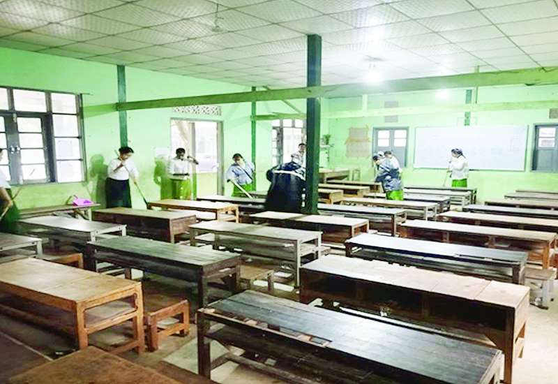 ၂၀၂၅-၂၀၂၆ ပညာသင်နှစ် ကျောင်းဖွင့်ရာသီတွင် ကျောင်းသား ကျောင်းသူများ အဆင်ပြေချောမွေ့စွာ ပညာသင်ကြားနိုင်ရေးနှင့် စာသင်ကျောင်းများ ဥပဓိရုပ်ကောင်းမွန်စေရေးအတွက် တိုင်းဒေသကြီးနှင့် ပြည်နယ်အသီးသီးရှိ အခြေခံပညာကျောင်းများနှင့် ပညာရေးဒီဂရီကောလိပ်များတွင် ကျောင်းပတ်ဝန်းကျင်သန့်ရှင်းသာယာလှပရေးအတွက် နယ်မြေခံတပ်မတော်သားများ၊ ဌာနဆိုင်ရာဝန်ထမ်းများ၊ လူမှုရေးအသင်းအဖွဲ့များနှင့် ဒေသခံပြည်သူများက စုပေါင်းသန့်ရှင်းရေးလုပ်ငန်းများ ဆောင်ရွက်ပေးလျက်ရှိသည်။