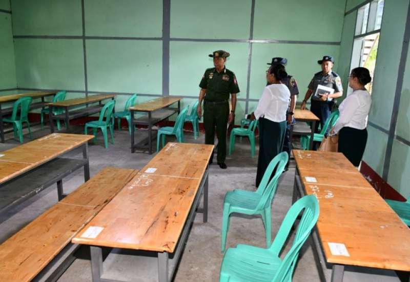မန္တလေးတိုင်းဒေသကြီး၊ မဟာအောင်မြေခရိုင်၊ ချမ်းမြသာစည်မြို့နယ်၊ မြို့သစ်အမှတ်(၂)ရပ်ကွက်၊ မြို့သစ်အမှတ်(၃)ရပ်ကွက်၊ မြို့သစ်အမှတ်(၄)ရပ်ကွက်နှင့် အောင်ပင်လယ်ရပ်ကွက်တို့ရှိ အခြေခံပညာကျောင်းများ၌ ပြန်လည်ကျင်းပမည့် ၂၀၂၄-၂၀၂၅ ပညာသင်နှစ်၊ တက္ကသိုလ်ဝင်စာမေးပွဲအတွက် စာစစ်ဌာနများ ကြိုတင်ပြင်ဆင်ထားရှိမှု အခြေအနေများကို ယနေ့နံနက်ပိုင်းတွင် ကာကွယ်ရေးဦးစီးချုပ်ရုံး(ကြည်း)မှ ဒုတိယဗိုလ်ချုပ်ကြီး မျိုးမိုးအောင်နှင့် တာဝန်ရှိသူများက သွားရောက်ကြည့်ရှု၍ တက္ကသိုလ်ဝင်စာမေးပွဲအတွက် စာစစ်ဌာနများ ကြိုတင်ပြင်ဆင်ထားရှိမှု၊ မေးခွန်းနှင့် အဖြေလွှာများ ထိန်းသိမ်းထားရှိမှု၊ ကျောင်းသား၊ ကျောင်းသူများ ဘေးကင်းလုံခြုံအေးချမ်းစွာ ဖြေဆိုနိုင်ရေးအတွက် ကြိုတင်ပြင်ဆင်ဆောင်ရွက်ထားရှိမှုနှင့် ကျန်းမာရေးစောင့်ရှောက်မှုပေးနိုင်ရေး အတွက်ပြင်ဆင်ဆောင်ရွက်ထားရှိမှုများကို ကြည့်ရှုစစ်ဆေးပြီး တာဝန်ရှိသူများ၏ တင်ပြချက်များအပေါ် လိုအပ်သည်များ ပေါင်းစပ်ညှိနှိုင်းဆောင်ရွက်ပေးသည်။ ထို့နောက် ဆရာ၊ ဆရာမများအတွက် စားသောက်ဖွယ်ရာများပေးအပ်သည်။