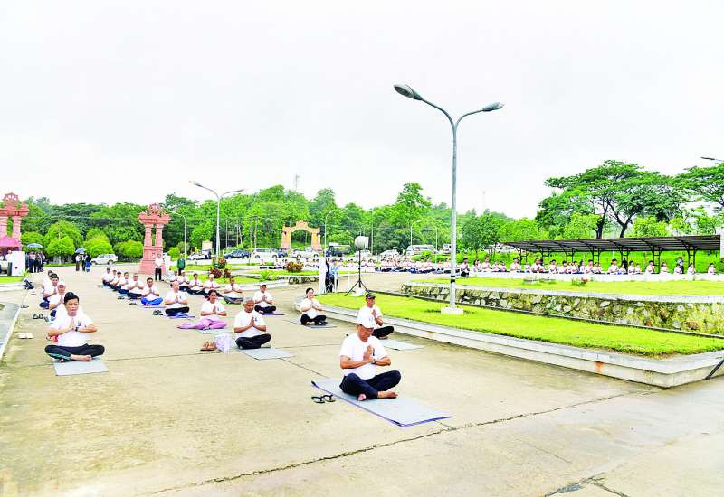 ဒုတိယဝန်ကြီးချုပ်နှင့် နိုင်ငံခြားရေးဝန်ကြီးဌာန ပြည်ထောင်စုဝန်ကြီးဦးသန်းဆွေသည် သာသနာရေးနှင့် ယဉ်ကျေးမှုဝန်ကြီးဌာနနှင့် ရန်ကုန်မြို့အခြေစိုက် မြန်မာနိုင်ငံဆိုင်ရာ အိန္ဒိယသံရုံးတို့ပူးပေါင်းစီစဉ်မှုဖြင့် ယနေ့နံနက် ၆ နာရီတွင် နေပြည်တော် သတ္တသတ္တာဟ မဟာဗောဓိစေတီတော်ရင်ပြင်၌ ကျင်းပသည့် (၁၁)ကြိမ်မြောက် အပြည်ပြည်ဆိုင်ရာယောဂနေ့ အထိမ်းအမှတ်အခမ်းအနား ယောဂ သရုပ်ပြလေ့ကျင့်ခြင်းအစီအစဉ်သို့ တက်ရောက်သည်။