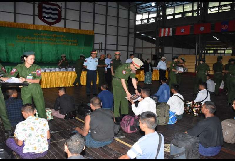 ဧရာဝတီတိုင်းဒေသကြီးအတွင်း ပြည်သူ့စစ်မှုထမ်းသင်တန်း အမှတ်စဉ် (၁၄) သို့ တက်ရောက်မည့် ပြည်သူ့စစ်မှုထမ်းသင်တန်းသားများအား တွေ့ဆုံပွဲကို ယနေ့နံနက်ပိုင်းတွင် ပုသိမ်တပ်နယ်အားကစားခန်းမ၌ပြုလုပ်ရာ ဧရာဝတီတိုင်းဒေသကြီးဝန်ကြီးချုပ် ဦးတင်မောင်ဝင်း၊ အနောက်တောင်တိုင်းစစ်ဌာနချုပ်တိုင်းမှူး ဗိုလ်မှူးချုပ်စိုးကျော်ထက်နှင့် တာဝန်ရှိသူများ၊ ဌာနဆိုင်ရာတာဝန်ရှိသူများနှင့် ပြည်သူ့စစ်မှုထမ်းသင်တန်းသားများ တက်ရောက်ကြသည်။
