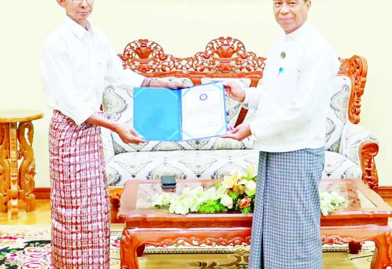 မန္တလေးငလျင်ဘေးသင့်ပြည်သူများအတွက် လိုအပ်သည့်ထောက်ပံ့မှုများနှင့် ပြန်လည်ထူထောင်ရေးလုပ်ငန်းများ ဆောင်ရွက်နိုင်ရန်အတွက် ယနေ့မွန်းလွဲပိုင်းတွင် ရန်ကုန်တိုင်းဒေသကြီးနေ ဦးစိုးညွန့် + ဒေါ်ခင်ကြည် (ကြာညိုပန်း-မိသားစု) က ငွေကျပ် ၅၀၀၀၀၀၀၀ ကို လူမှုဝန်ထမ်း၊ ကယ်ဆယ်ရေးနှင့် ပြန်လည်နေရာချထားရေးဝန်ကြီးဌာန သဘာဝဘေးအန္တရာယ်ဆိုင်ရာစီမံခန့်ခွဲမှုဗဟိုဌာန(DMC)ရုံးသို့ လာရောက်ပေးအပ်လှူဒါန်းရာ ပြည်ထောင်စုဝန်ကြီး ဒေါက်တာစိုးဝင်းက လက်ခံရယူပြီး ကျေးဇူးတင်စကားပြောကြားကာ ဂုဏ်ပြုမှတ်တမ်းလွှာ ပြန်လည်ပေးအပ်ခဲ့ကြောင်း သိရသည်။