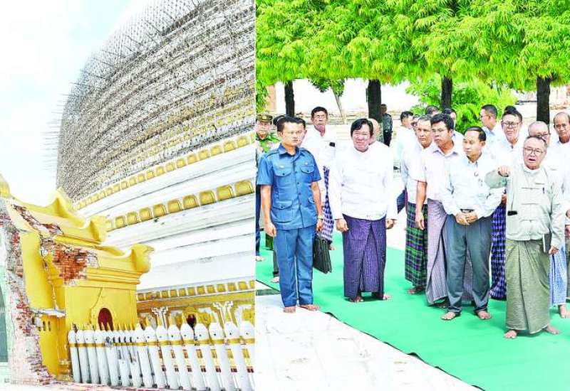 နိုင်ငံတော်စီမံအုပ်ချုပ်ရေးကောင်စီဥက္ကဋ္ဌ နိုင်ငံတော်ဝန်ကြီးချုပ် ဗိုလ်ချုပ်မှူးကြီး မင်းအောင်လှိုင်သည် ဇနီးဒေါ်ကြူကြူလှ၊ ကောင်စီတွဲဖက်အတွင်းရေးမှူး ဗိုလ်ချုပ်ကြီး ရဲဝင်းဦး၊ ခရီးစဉ်တွင် လိုက်ပါလာသည့် အဖွဲ့ဝင်များ၊ မန္တလေးတိုင်းဒေသကြီး ဝန်ကြီးချုပ်၊ စစ်ကိုင်းတိုင်းဒေသကြီး ဝန်ကြီးချုပ်တို့လိုက်ပါ၍ ယနေ့တွင် စစ်ကိုင်းမြို့နှင့် မန္တလေးမြို့တို့အတွင်း ငလျင်ဘေးဒဏ်ကြောင့် ထိခိုက်ပျက်စီးဆုံးရှုံးမှုများအပေါ် ပြန်လည်ထူထောင်ရေးလုပ်ငန်းများ ဆောင်ရွက်ပေးနေမှုများအား သွားရောက်ကြည့်ရှုစစ်ဆေးပြီး လိုအပ်သည်များ ဖြည့်ဆည်းဆောင်ရွက်ပေးသည်။