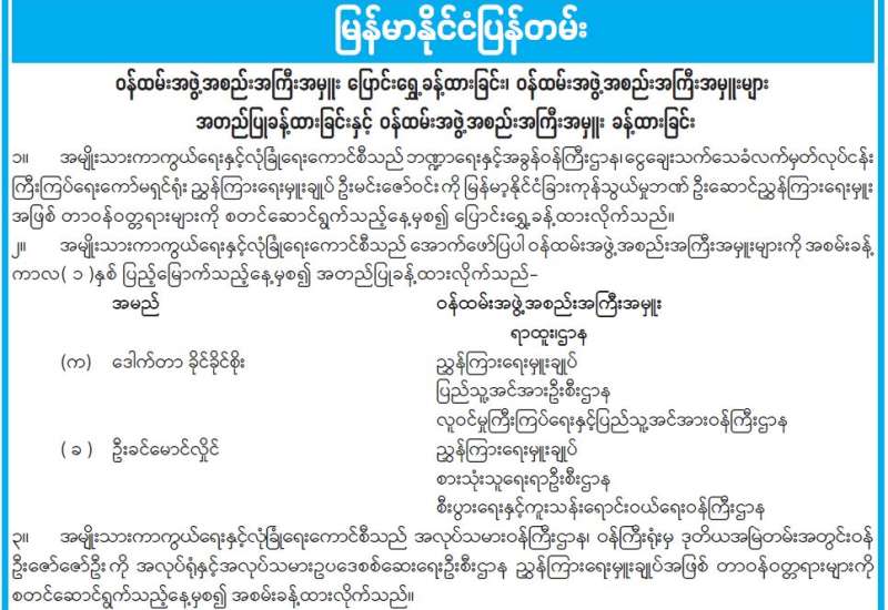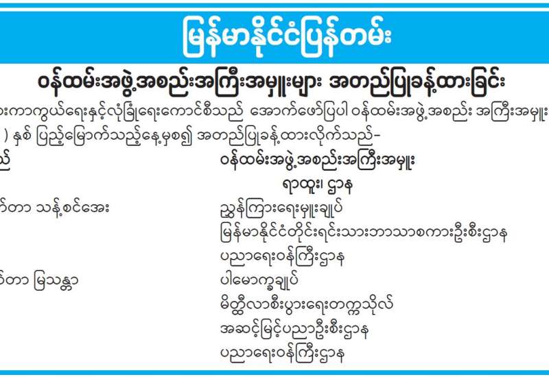 ဝန်ထမ်းအဖွဲ့အစည်းအကြီးအမှူးများ အတည်ပြုခန့်ထားခြင်း