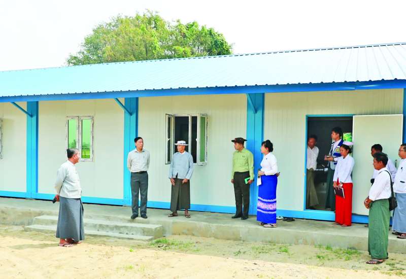 လူမှုဝန်ထမ်း၊ ကယ်ဆယ်ရေးနှင့် ပြန်လည်နေရာချထားရေးဝန်ကြီးဌာန ပြည်ထောင်စုဝန်ကြီး ဒေါက်တာစိုးဝင်းသည် တာဝန်ရှိသူများနှင့်အတူ ယနေ့နံနက်ပိုင်းတွင် နေပြည်တော် လယ်ဝေးမြို့နယ် အောင်မြင်ကုန်းကျေးရွာရှိ ငလျင်ဘေးဒဏ်သင့်ဒေသများ ပြန်လည်ထူထောင်ရေးအတွက် ထိုင်းနိုင်ငံက AHA Center မှတစ်ဆင့် ဆောက်လုပ်လှူဒါန်းထားသော အောင်မြင်ကုန်းကျေးရွာ အသင့်တပ်ဆင် ကျေးလက်ကျန်းမာရေးဆေးခန်း အဆောက်အအုံဆောက်လုပ်ပြီးစီးမှုအခြေအနေကို ကွင်းဆင်းကြည့်ရှုသည်။