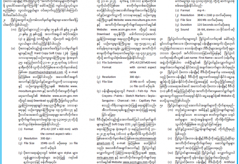 အဂတိလိုက်စားမှုတိုက်ဖျက်ရေး အသိပညာပေးဆိုင်ရာ ပိုစတာ၊ ပန်းချီနှင့် ဗီဒီယိုပြိုင်ပွဲသို့ ဝင်ရောက်ယှဉ်ပြိုင်နိုင်ရေး ဖိတ်ခေါ်ခြင်း