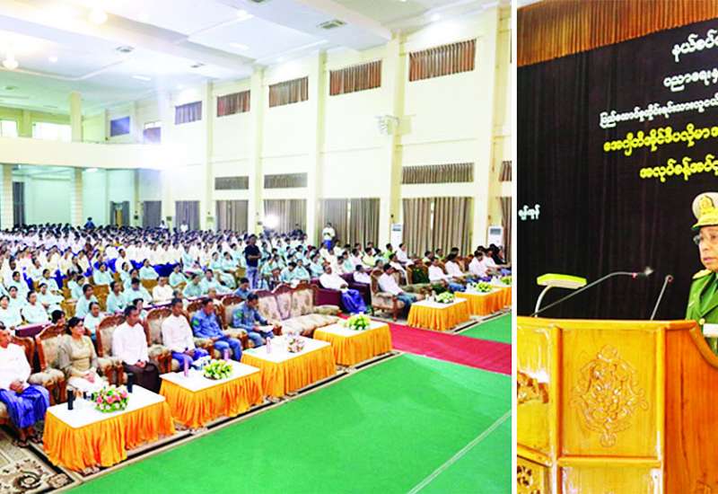 နိုင်ငံတော်စီမံအုပ်ချုပ်ရေးကောင်စီဥက္ကဋ္ဌ တပ်မတော်ကာကွယ်ရေးဦးစီးချုပ် ဗိုလ်ချုပ်မှူးကြီး မင်းအောင်လှိုင်သည် ယနေ့မွန်းလွဲပိုင်းတွင် တြိဂံဒေသတိုင်းစစ်ဌာနချုပ် ကျိုင်းတုံတပ်နယ်မှ အရာရှိ၊ စစ်သည်၊ မိသားစုဝင်များအား တိုင်းစစ်ဌာနချုပ် ပြည်ငြိမ်းအေးခန်းမ၌ တွေ့ဆုံအမှာစကားပြောကြားသည်။