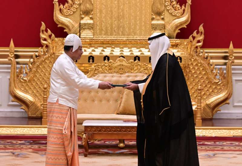 ပြည်ထောင်စုသမ္မတမြန်မာနိုင်ငံတော် ယာယီသမ္မတ နိုင်ငံတော်လုံခြုံရေးနှင့် အေးချမ်းသာယာရေးကော်မရှင်ဥက္ကဋ္ဌ ဗိုလ်ချုပ်မှူးကြီး မင်းအောင်လှိုင်ထံ မြန်မာနိုင်ငံဆိုင်ရာ ဆော်ဒီအာရေဗျနိုင်ငံ သံအမတ်ကြီး H.E. Mr. Maziad Mohammed M Al Howishan က ယနေ့နံနက် ၁၁ နာရီတွင် နေပြည်တော်ရှိ အမျိုးသားကာကွယ်ရေးနှင့်လုံခြုံရေးကောင်စီရုံး၊ သံတမန်ဆောင်ဧည့်ခန်းမ၌ ၎င်း၏သံအမတ်ခန့်အပ်လွှာကို ပေးအပ်သည်။