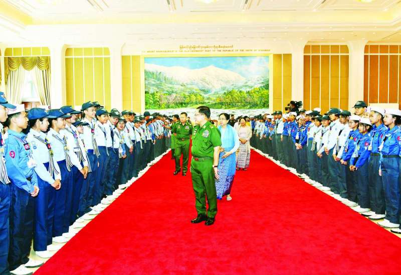 နိုင်ငံတော်ကို တည်ငြိမ်အေးချမ်းမှုရှိပြီး ဘက်စုံဖွံ့ဖြိုးတိုးတက်စေရန် နိုင်ငံတော်စီမံအုပ်ချုပ်ရေးကောင်စီအနေဖြင့် အစွမ်းကုန်ကြိုးစားဆောင်ရွက်လျက်ရှိရာတွင် လူငယ်များ၏ အခန်းကဏ္ဍနှင့်ပတ်သက်ပြီး အထူးအလေးထားဆောင်ရွက်ပေးလျက်ရှိကြောင်း၊ နိုင်ငံတော်အတွက် လူသားအရင်းအမြစ်များ မွေးမြူနေချိန်တွင် မောင်တို့မယ်တို့အနေဖြင့် သင်ယူခဲ့သည့်ပညာရပ်များ၏ အခြေခံသဘောတရားများမှတစ်ဆင့် စူးစမ်းလေ့လာမှုများ ပြုလုပ်ပြီး တိုးတက်အောင်မြင်အောင် ထပ်မံကြိုးစားသွားကြရန်လိုကြောင်းဖြင့် နိုင်ငံတော်စီမံအုပ်ချုပ်ရေးကောင်စီဥက္ကဋ္ဌ တပ်မတော်ကာကွယ်ရေးဦးစီးချုပ် ဗိုလ်ချုပ်မှူးကြီး မင်းအောင်လှိုင်က ယနေ့နံနက်ပိုင်းတွင် နေပြည်တော်ရှိ ဇေယျာသီရိဗိမာန်၌ ကျင်းပပြုလုပ်သည့် အခြေခံနှင့် တန်းမြင့်ရေကြောင်းလူငယ်သင်တန်း အမှတ်စဉ် (၁/၂၀၂၅) နှင့် အခြေခံနှင့် တန်းမြင့်လေကြောင်းလူငယ်သင်တန်း (၁/၂၀၂၅) မှ သင်တန်းသား၊ သင်တန်းသူများနှင့် အုပ်ချုပ်သူနည်းပြများအား တွေ့ဆုံအမှာစကားပြောကြားစဉ် ထည့်သွင်းပြောကြားသည်။