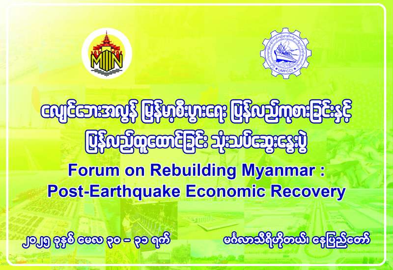ငလျင်ဘေးအလွန် မြန်မာ့စီးပွားရေး ပြန်လည်ကုစားခြင်းနှင့် ပြန်လည်ထူထောင်ခြင်း သုံးသပ်ဆွေးနွေးပွဲ
