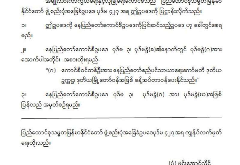 နေပြည်တော်ကောင်စီဥပဒေကို ပြင်ဆင်သည့်ဥပဒေ