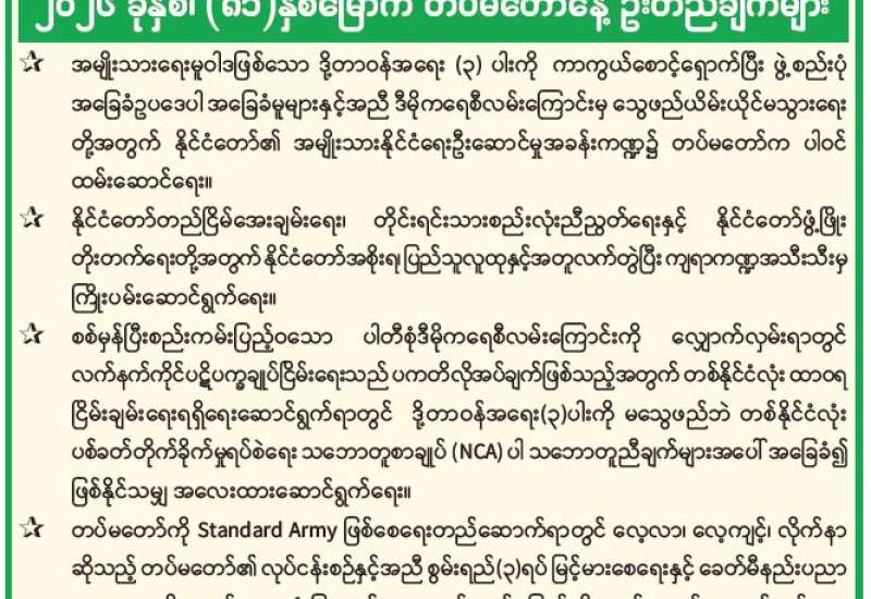 ဒီနေ့မှာတော့ မီဒီယာများမေးမြန်းနေကြတဲ့ စက်သုံးဆီကိစ္စနဲ့ပတ်သက်ပြီး ပြောကြားပါမယ်။ မနေ့ကတော့ ကျွန်တော်တို့အနေနဲ့ စက်သုံးဆီခြိုးခြံချွေတာရေးအတွက် ပြည်သူသို့ အသိပေးပန်ကြားချက်ဆိုပြီးတော့ ထုတ်ပြန်ခဲ့ပါတယ်။ ဒါကို အဓိကထုတ်ပြန်ရတဲ့ အကြောင်းအရင်းကတော့ နံပါတ်တစ် ကျွန်တော်တို့နိုင်ငံမှာ အရန်စက်သုံးဆီ မရှိလို့မဟုတ်ပါဘူး။ ထပ်ပြောပါမယ်၊ အရန်စက်သုံးဆီမရှိလို့ ထုတ်ပြန်ခဲ့ခြင်း မဟုတ်ပါဘူး။ ရေရှည်ဖြစ်လာနိုင်တဲ့ကိစ္စတွေကိုတွက်ဆပြီးတော့ ကျွန်တော်တို့ ခြိုးခြံချွေတာရေးအတွက်သာ ထုတ်ပြန်ခဲ့ခြင်း ဖြစ်ပါတယ်။ စနစ်တကျအသုံးပြုပြီးတော့ ကမ္ဘာမှာကြုံတွေ့နေရတဲ့ လောင်စာဆီအခက်အခဲကို မြန်မာနိုင်ငံအနေနဲ့ စနစ်တကျဖြတ်သန်းနိုင်ဖို့ရည်ရွယ်ပြီး ထုတ်ပြန်ခဲ့ရခြင်း ဖြစ်ပါတယ်။