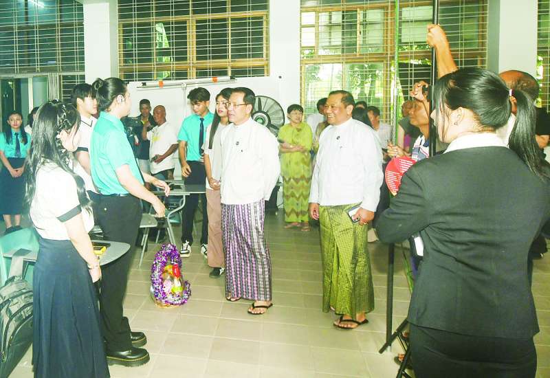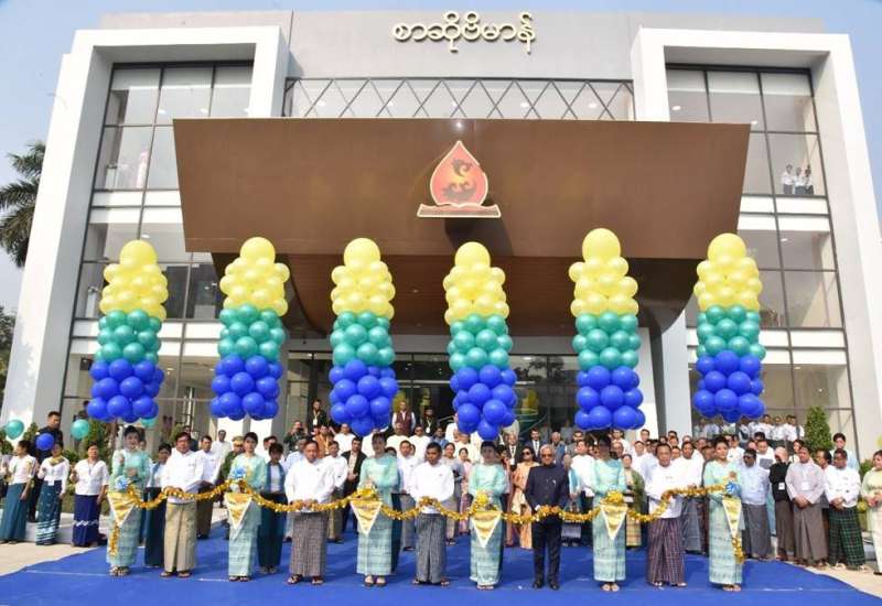 ပြန်ကြားရေးဝန်ကြီးဌာန၊ ပုံနှိပ်ရေးနှင့်ထုတ်ဝေရေးဦးစီးဌာန၏ စာဆိုဗိမာန်အဆောက်အဦ ဖွင့်ပွဲအခမ်းအနားကို ယနေ့နံနက်ပိုင်းတွင် ရန်ကုန်တိုင်းဒေသကြီး၊ မင်္ဂလာတောင်ညွန့်မြို့နယ်၊ ဗိုလ်မင်းခေါင်လမ်းရှိ အဆိုပါအဆောက်အဦ၌ကျင်းပရာ နိုင်ငံတော်ဝန်ကြီးချုပ် ဦးညိုစောနှင့်ဇနီး တက်ရောက်သည်။