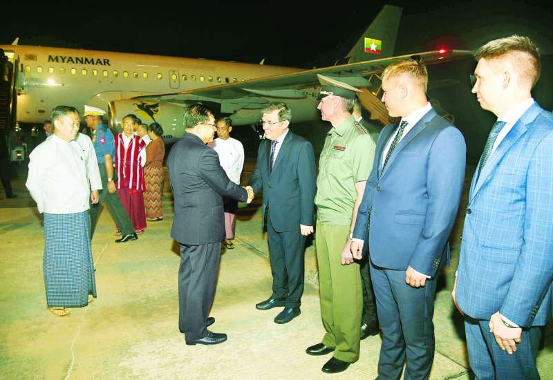 ရုရှားဖက်ဒရေးရှင်းနိုင်ငံတွင် ကျင်းပပြုလုပ်ခဲ့သော ၁၉၄၁-၁၉၄၅ မဟာမျိုးချစ်စစ်ပွဲကြီးအောင်ပွဲ နှစ် (၈၀) ပြည့်အထိမ်းအမှတ် စစ်ရေးပြအခမ်းအနားသို့တက်ရောက်ခဲ့သည့် နိုင်ငံတော်စီမံအုပ်ချုပ်ရေးကောင်စီဥက္ကဋ္ဌ နိုင်ငံတော်ဝန်ကြီးချုပ် ဗိုလ်ချုပ်မှူးကြီး မင်းအောင်လှိုင် ဦးဆောင်သည့် မြန်မာအဆင့်မြင့် ကိုယ်စားလှယ်အဖွဲ့ဝင်များသည် ယနေ့နံနက်ပိုင်းတွင် ရုရှားဖက်ဒရေးရှင်းနိုင်ငံ မော်စကိုမြို့ရှိ ဘနူကာဘာ အပြည်ပြည်ဆိုင်ရာလေဆိပ်မှ ပြည်ထောင်စုသမ္မတမြန်မာနိုင်ငံတော်သို့ အထူးလေယာဉ်ဖြင့် ပြန်လည်ထွက်ခွာရာ ရုရှားဖက်ဒရေးရှင်းနိုင်ငံ နိုင်ငံခြားရေးဝန်ကြီးဌာန အစိုးရပရိုတိုကောဌာန၏ ညွှန်ကြားရေးမှူးနှင့် တာဝန်ရှိသူများ၊ ရုရှားဖက်ဒရေးရှင်းနိုင်ငံဆိုင်ရာ မြန်မာနိုင်ငံ သံအမတ်ကြီး ဦးသစ်လင်းအုန်း၊ မြန်မာစစ်သံ (ကြည်း၊ ရေ၊ လေ) ဗိုလ်မှူးချုပ် ကျော်စိုးဦးနှင့် တာဝန်ရှိသူများက လေဆိပ်တွင် လိုက်လံပို့ဆောင်နှုတ်ဆက်ကြသည်။