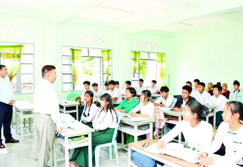 အမျိုးသားလုံခြုံရေးဆိုင်ရာ အကြံပေးပုဂ္ဂိုလ်နှင့် ပြည်ထောင်စုဝန်ကြီး ဗိုလ်ချုပ်ကြီး မိုးအောင်သည် တာဝန်ရှိသူများနှင့်အတူ ယနေ့တွင် မန္တလေးတိုင်းဒေသကြီး ကျောက်ဆည်မြို့ အမှတ် (၃) အခြေခံပညာအထက်တန်းကျောင်းနှင့် အမှတ် (၁) အခြေခံပညာအထက်တန်းကျောင်း၊ စဉ့်ကိုင်မြို့ အခြေခံပညာအထက်တန်းကျောင်း၊ ချမ်းအေးသာစံမြို့ အမှတ် (၁၆) အခြေခံပညာအထက်တန်းကျောင်းနှင့် အမှတ် (၁) အခြေခံပညာအထက်တန်းကျောင်းတို့တွင် စခန်းသွင်းသင်ကြားလေ့ကျင့်နေသည့် တက္ကသိုလ် ပါမောက္ခ၊ ဆရာ ဆရာမများနှင့် အခြေခံပညာ ဆရာ ဆရာမများ၊ ၂၀၂၅ ခုနှစ် တက္ကသိုလ်ဝင်စာမေးပွဲပြန်လည်ဖြေဆိုမည့် ကျောင်းသား ကျောင်းသူများအား တွေ့ဆုံအားပေးသည်။