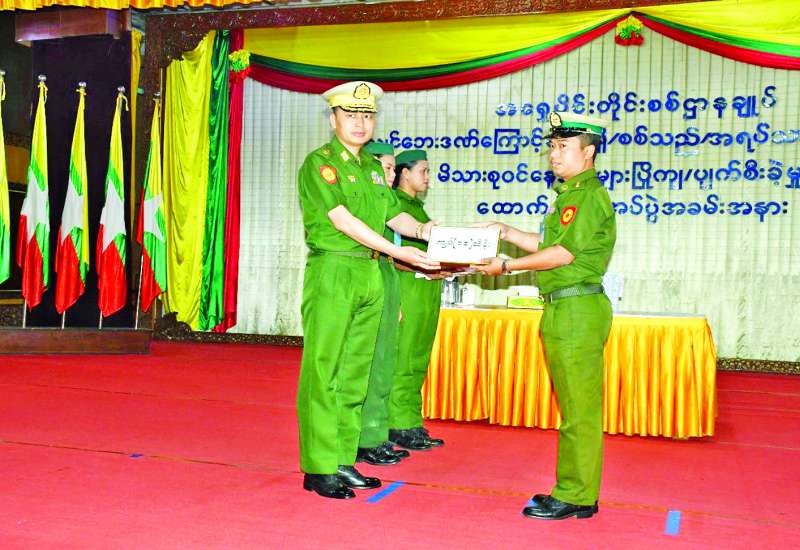 အရှေ့ပိုင်းတိုင်းစစ်ဌာနချုပ်တွင် မြေငလျင်ဒဏ်ကြောင့် မိသားစုဝင်နေအိမ်များ ပြိုကျပျက်စီးခဲ့သည့် အရာရှိ၊ စစ်သည်၊ အရပ်သားဝန်ထမ်းများအား ထောက်ပံ့ငွေပေးအပ်ပွဲကို ယနေ့နံနက်ပိုင်းတွင် တိုင်းစစ်ဌာနချုပ် သံလွင်ခန်းမ၌ ပြုလုပ်ရာ တိုင်းမှူး ဗိုလ်ချုပ် ဇော်မင်းလတ်နှင့် အဖွဲ့ဝင်များ၊ အရာရှိ၊ စစ်သည်၊ အရပ်သားဝန်ထမ်းများ တက်ရောက်ကြသည်။