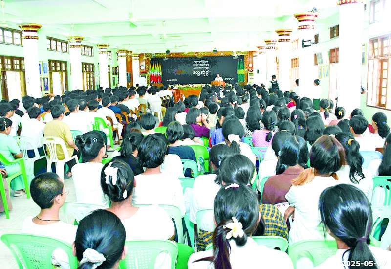 အခြေခံလေကြောင်းလူငယ်သင်တန်း အမှတ်စဉ်(၁/၂၀၂၅) (တောင်ကြီးစခန်း)၌ တက်ရောက်သင်ကြားလျက်ရှိသည့် သင်တန်းသား၊ သင်တန်းသူများအတွက် အထူးနေ့လယ်စာစားပွဲကို ယနေ့မွန်းလွဲပိုင်းတွင် အရှေ့ပိုင်းတိုင်းစစ်ဌာနချုပ် သံလွင်ခန်းမ၌ ပြုလုပ်ရာ တိုင်းမှူး ဗိုလ်ချုပ် ဇော်မင်းလတ်နှင့် အဖွဲ့ဝင်များ၊ ပြည်နယ်ဝန်ကြီးများ၊ သင်တန်းနည်းပြများ၊ သင်တန်းသား၊ သင်တန်းသူများနှင့် ဖိတ်ကြားထားသူများ တက်ရောက်ကြသည်။