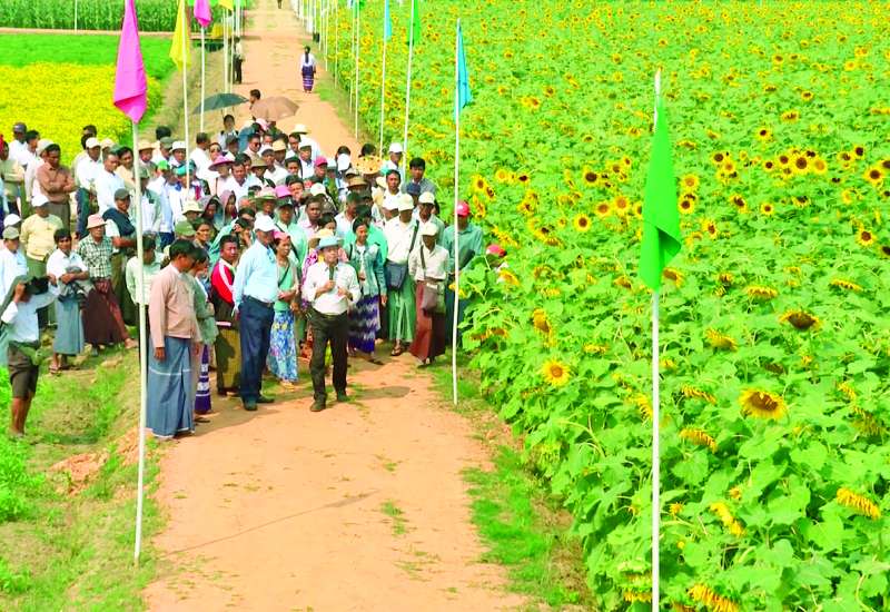 စိုက်ပျိုးရေး၊ မွေးမြူရေးနှင့်ဆည်မြောင်းဝန်ကြီးဌာန ဒုတိယဝန်ကြီး ဒေါက်တာတင်ထွဋ်သည် ယနေ့နံနက်ပိုင်းတွင် နေပြည်တော်ကောင်စီနယ်မြေ ပုဗ္ဗသီရိမြို့နယ် ဘဲကုန်းကျေးရွာ တောင်သူစံပြစိုက်ခင်းတွင် စိုက်ပျိုးထားသည့် မျိုးမြှင့်တင် ရွေးချယ်ထားသော ၇၄ ရက်သားရှိသည့် ဆင်းရွှေကြာ-၂ နေကြာ စိုက်ခင်းနှင့် စပ်မျိုးပြောင်း ၁၄ မျိုး အချင်းချင်းမျိုးကူးစပ်ခြင်းနည်းဖြင့် ဆောင်ရွက်၍ ပြောင်းဖူး Composite မျိုးများရရှိရန် မွေးမြူခြင်းစိုက်ခင်း၊ ပန်းနှမ်း၊ ပဲယဉ်းနီ၊ ပဲပုပ်ရေဆင်း ၁၅ ပေါင်ဖော်ကြဲပက်စိုက်နည်းစနစ် စိုက်ခင်းများကို ကြည့်ရှုစစ်ဆေးသည်။