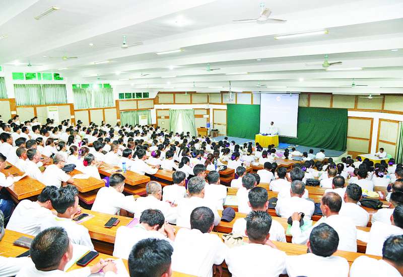 အခြေခံပညာနှင့်စက်မှု၊ စိုက်ပျိုး၊ မွေးမြူရေးအထက်တန်းကျောင်းများတွင် Grade-10, Grade-11, Grade-12 သင်ကြားမည့် သင်ကြားရေးမွမ်းမံ သင်တန်းတက်ရောက်နေသော ဆရာ ဆရာမများနှင့် တွေ့ဆုံပွဲအခမ်းအနားကို ယနေ့နံနက်ပိုင်းက နေပြည်တော် ရေဆင်းစိုက်ပျိုးရေးတက္ကသိုလ်၌ကျင်းပရာ စိုက်ပျိုးရေး၊ မွေးမြူရေးနှင့်ဆည်မြောင်း ဝန်ကြီးဌာန ပြည်ထောင်စုဝန်ကြီး ဦးမင်းနောင်၊ ညွှန်ကြားရေးမှူးချုပ်များ၊ ပါမောက္ခချုပ်များ၊ ပါမောက္ခဌာနမှူးများ၊ ညွှန်ကြားရေးမှူးများ သင်တန်းပို့ချမည့် ဆရာဆရာမများ၊ တိုင်းဒေသကြီး/ပြည်နယ်အသီးသီးမှ သင်တန်းသား သင်တန်းသူ ဆရာ ဆရာမများ တက်ရောက်ကြသည်။