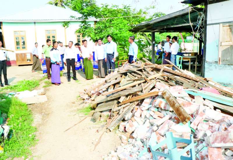 သမဝါယမနှင့်ကျေးလက်ဖွံ့ဖြိုးရေးဝန်ကြီးဌာန ဒုတိယဝန်ကြီး ဦးမြင့်စိုးသည် တာဝန်ရှိသူများနှင့်အတူ မန္တလေးငလျင်ကြီး လှုပ်ခတ်မှုကြောင့် ထိခိုက်မှုရှိခဲ့သော မန္တလေးတိုင်းဒေသကြီး ရမည်းသင်းမြို့ရှိ ကျေးလက်ဒေသဖွံ့ဖြိုးတိုးတက်ရေးဦးစီးဌာန ခရိုင်ဦးစီးမှူးရုံးသို့ ယနေ့နံနက် ပိုင်းက သွားရောက်ကြည့်ရှုစစ်ဆေးကာ မိမိဝန်ကြီးဌာန၏ တိုင်း၊ ခရိုင်၊ မြို့နယ်အင်ဂျင်နီယာများပါဝင်သော အကြိုစစ်ဆေးရေးလုပ်ငန်းအဖွဲ့ ဖွဲ့စည်း၍ ရုံးအဆောက်အအုံများ၏ Horizontal Alignment ၊ Vertical Alignment ၊ Structural Member အချို့နှင့် Non-Structure များ ကြံ့ခိုင်မှုအခြေအနေ တိုင်းတာစစ်ဆေးမှုများကို အမြန်ဆောင်ရွက်ပေးရန်၊ အတက်အဆင်းလှေကား နိမ့်ကျနေမှုကို စစ်ဆေးပြုပြင်ရန်၊ မျက်နှာကြက်များ ပြန်လည်တပ်ဆင်ပေးသွားရန်နှင့် ရေထွက်နည်းသွားသော ရုံးပိုင်စက်ရေတွင်းအား တွင်းဆေးတွင်းမှုတ် ပြန်လည်ပြုလုပ်ပေးရန် မှာကြားသည်။