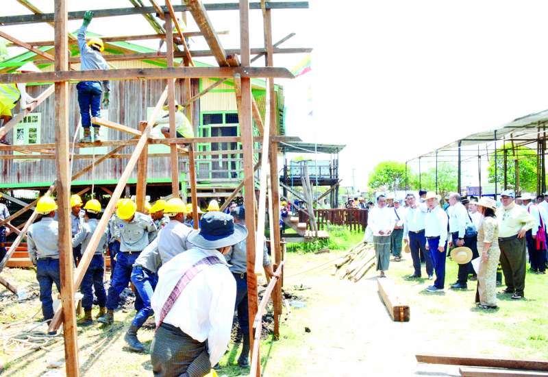 အဆောက်အဦများ ပြန်လည်ပြုပြင်အသုံးပြုရေးနှင့် အသစ်တည်ဆောက်ရေး ကြီးကြပ်မှုကော်မတီ၏ ပထမအကြိမ်လုပ်ငန်းညှိနှိုင်းအစည်းအဝေးကို ယနေ့မွန်းလွဲပိုင်းတွင် ကာကွယ်ရေးဝန်ကြီးဌာန အစည်းအဝေးခန်းမ၌ကျင်းပရာ အဆောက်အဦများ ပြန်လည်ပြုပြင်အသုံးပြုရေးနှင့် အသစ်တည်ဆောက်ရေးကြီးကြပ်မှုကော်မတီဥက္ကဋ္ဌ နိုင်ငံတော်စီမံအုပ်ချုပ်ရေးကောင်စီအဖွဲ့ဝင် ဒုတိယဝန်ကြီးချုပ်နှင့် ကာကွယ်ရေးဝန်ကြီးဌာန ပြည်ထောင်စုဝန်ကြီး ဗိုလ်ချုပ်ကြီး မောင်မောင်အေး တက်ရောက်အမှာစကား ပြောကြားသည်။