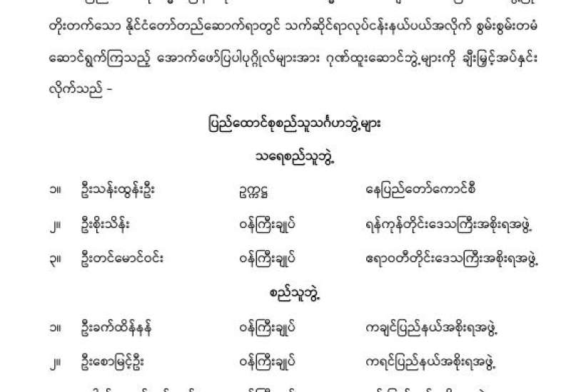 ပြည်ထောင်စုသမ္မတမြန်မာနိုင်ငံတော် ယာယီသမ္မတသည် ယနေ့တွင်ကျရောက်သည့် (၆၄) နှစ်မြောက် တောင်သူလယ်သမားနေ့အထိမ်းအမှတ်နေ့ကို ဂုဏ်ပြုသောအားဖြင့် ပြည်သူလူထုနှလုံးစိတ်ဝမ်းအေးချမ်းစေရန်နှင့် လူသားချင်းစာနာထောက်ထားမှုကို အလေးထားသောအားဖြင့် နိုင်ငံတော်၏မေတ္တာနှင့် စေတနာကိုနားလည်စေရန်ရှေးရှု၍ ၂ဝ၂၆ ခုနှစ်၊ မတ်လ ၂ ရက်နေ့မတိုင်မီ လူသတ်မှု၊ မုဒိမ်းမှု၊ ပေါက်ကွဲစေတတ်သော ဝတ္ထုပစ္စည်းများအက်ဥပဒေအရ ပြစ်မှုများ၊ မတရားအသင်းများအက်ဥပဒေအရ ပြစ်မှုများ၊ ၁၈၇၈ ခုနှစ် လက်နက်များအက်ဥပဒေပုဒ်မ ၁၉(စ)အရ ပြစ်မှုများ၊ ၁၉၄၉ ခုနှစ် လက်နက်(အရေးပေါ် ပြစ်ဒဏ်စီရင်မှု) (ယာယီ) အက်ဥပဒေအရပြစ်မှုများ၊ ၁၉၅၁ ခုနှစ် လက်နက်(ယာယီပြင်ဆင်ချက်) အက်ဥပဒေအရပြစ်မှုများ၊ ၁၉၂၄ ခုနှစ် ရှမ်းပြည်နယ်လက်နက်အမိန့်အရ ပြစ်မှုများ၊ ၂ဝ၂၃ ခုနှစ်၊ လက်နက်ဥပဒေအရ ပြစ်မှုများ၊ မူးယစ်ဆေးဝါးနှင့် စိတ်ကိုပြောင်းလဲစေတတ်သော ဆေးဝါးများဆိုင်ရာဥပဒေအရပြစ်မှုများ၊ သဘာဝဘေးအန္တရာယ်ဆိုင်ရာစီမံခန့်ခွဲမှုဥပဒေအရပြစ်မှုများ၊ အကြမ်းဖက်မှုတိုက်ဖျက်ရေး ဥပဒေအရပြစ်မှုများနှင့် အဂတိလိုက်စားမှုတိုက်ဖျက်ရေးဥပဒေအရ ပြစ်မှုများမှအပ တည်ဆဲဥပဒေတစ်ရပ်ရပ်အရ ပြစ်မှုတစ်ခုခုနှင့်စပ်လျဉ်း၍ ပြစ်ဒဏ်ချမှတ်ခြင်းခံရပြီး အကျဉ်းထောင်/ အချုပ်ထောင်/ စခန်းအသီးသီးတွင် ပြစ်ဒဏ်ကျခံလျက်ရှိသော အကျဉ်းသား/အကျဉ်းသူများကို ရာဇဝတ်ကျင့်ထုံးဥပဒေပုဒ်မ ၄၀၁၊ ပုဒ်မခွဲ(၁) အရ ယင်းတို့ကျခံရန် ကျန်ရှိသောပြစ်ဒဏ်၏ ခြောက်ပုံတစ်ပုံကို လွတ်ငြိမ်းသက်သာခွင့်အားလည်းကောင်း၊ နိုင်ငံတစ်ဝန်းရှိ အကျဉ်းထောင်/ အချုပ်ထောင်/ စခန်းအသီးသီးတွင် ပြစ်ဒဏ်ကျခံလျက်ရှိသော အကျဉ်းသား/ အကျဉ်းသူ ၂၈၂၅ ဦးကို ရာဇဝတ်ကျင့်ထုံးဥပဒေပုဒ်မ ၄၀၁၊ ပုဒ်မခွဲ(၁)အရ “နောက်တစ်ကြိမ် ပြစ်မှုထပ်မံကျူးလွန်ပါက ၎င်းပြစ်ဒဏ်အပြင် ယခုကျခံရန် ကျန်ရှိသော ပြစ်ဒဏ်များကိုပါ ဆက်လက်ကျခံပါမည်" ဟူသော စည်းကမ်းသတ်မှတ်ချက်ဖြင့် ယင်းတို့ကျခံရန်ကျန်ရှိသော ပြစ်ဒဏ်များအပေါ် လျှော့ပေါ့၍ ပြစ်ဒဏ်လွတ်ငြိမ်းခွင့်အားလည်းကောင်း ခွင့်ပြုခဲ့သည်။