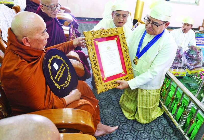ရန်ကုန်တိုင်းဒေသကြီးအစိုးရအဖွဲ့က ကြီးမှူး ကျင်းပသည့် ၂၀၂၆ ခုနှစ် သာသနာတော်ဆိုင်ရာ ဘွဲ့တံဆိပ်တော်ရ ဆရာတော်ကြီးများ၊ သီလရှင်ဆရာကြီးများနှင့် လူပုဂ္ဂိုလ်များအား သာသနာတော်ဆိုင်ရာဘွဲ့တံဆိပ်တော်များ ဆက်ကပ်ချီးမြှင့်အပ်နှင်းပွဲကို ယနေ့မွန်းလွဲ ၁ နာရီတွင် ရန်ကုန်မြို့ သီရိမင်္ဂလာ ကမ္ဘာအေးကုန်းမြေရှိ ဆဋ္ဌသင်္ဂါယနာတင် မဟာပါသာဏလိုဏ်ဂူသိမ်တော်ကြီး၌ ကျင်းပသည်။