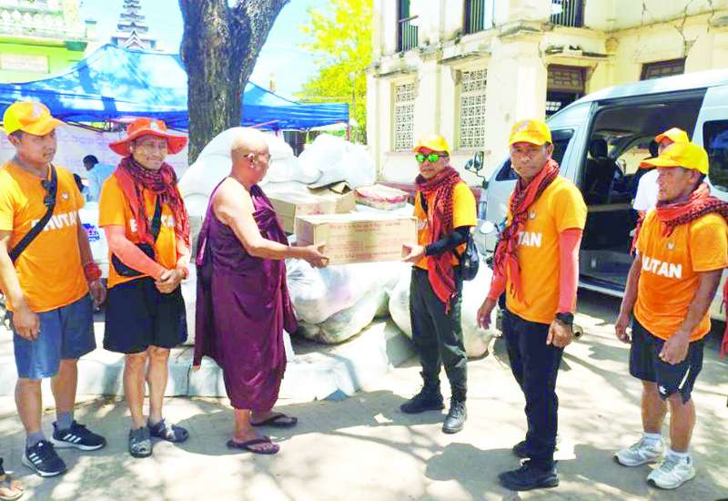 ငလျင်ဘေးဒဏ်သင့်ပြည်သူများအား ဆေးဝါးကုသပေးရန်အတွက် ရောက်ရှိနေသည့် ဘူတန်ဘုရင့်နိုင်ငံမှ ဆေးဘက်ဆိုင်ရာ အရေးပေါ်ကယ်ဆယ်ရေးအဖွဲ့ သည် ယနေ့နံနက်ပိုင်းတွင် ပြည်ထောင်စုနယ်မြေ နေပြည်တော် ပျဉ်းမနားမြို့နယ် ညောင်ပင်သာကျေးရွာ အခြေခံပညာအထက်တန်းကျောင်း၌ ခေတ်မီအလိုအလျောက်ရေသန့်စင်စက်နှင့် ရေလီတာ ၂၀၀၀ ဆံ့ ရေတိုင်ကီတို့ကို တပ်ဆင်လှူဒါန်းခဲ့ပြီး အဖွဲ့ခေါင်းဆောင် Dasho Tashi Wangyal က ကျောင်းအုပ်ဆရာကြီးနှင့် ဆရာ၊ ဆရာမများအား လှူဒါန်းရခြင်းအကြောင်းရင်း၊ နေပြည်တော်တွင် ငလျင်ဘေးဒဏ်သင့်လူနာ ၃၀၀၀ ကျော်ကို ဆေးဝါးကုသပေးနိုင်ခဲ့မှုနှင့် သန့်ရှင်းသောသောက်သုံးရေ လိုအပ်လျက်ရှိသည့် နေရာများတွင် ခေတ်မီရေသန့်စင်စက်လေးလုံးတပ်ဆင်လှူဒါန်းပေးမှု အခြေအနေတို့ကို ရှင်းလင်းပြောကြားသည်။