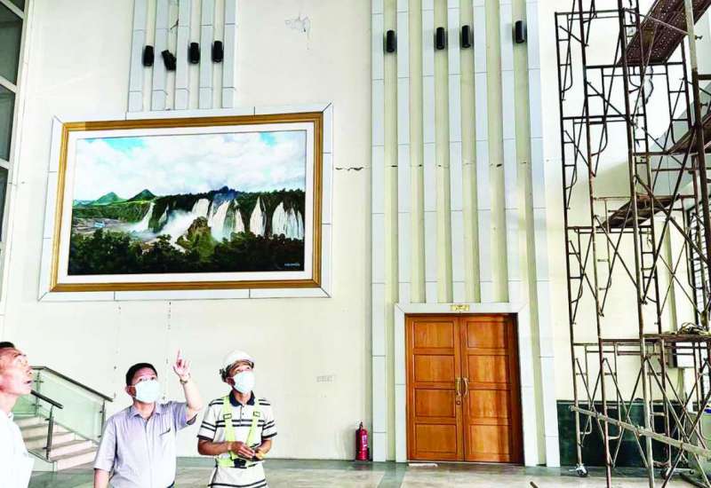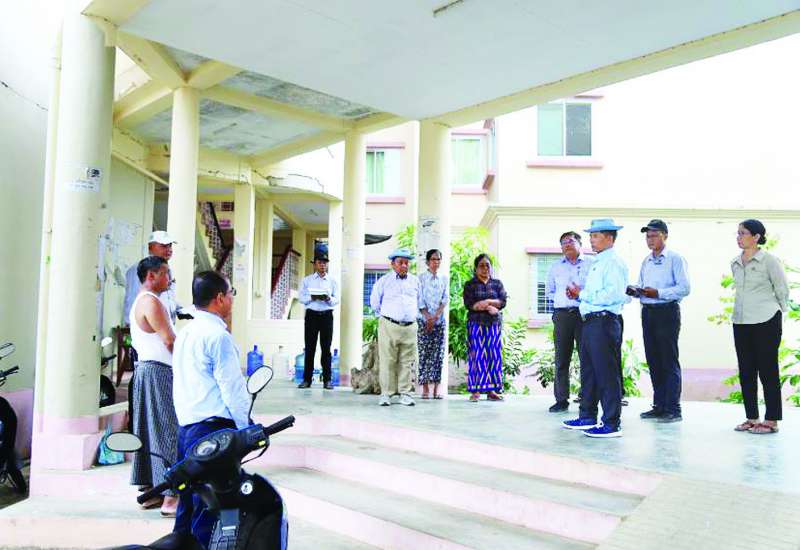 မြန်မာနိုင်ငံအိုလံပစ်ကော်မတီဥက္ကဋ္ဌ အားကစားနှင့်လူငယ်ရေးရာဝန်ကြီးဌာန ပြည်ထောင်စုဝန်ကြီး Jeng Phang နော်တောင်သည် ဒုတိယဝန်ကြီးများ၊ ညွှန်ကြားရေးမှူးချုပ်များ၊ တာဝန်ရှိသူများနှင့်အတူ ယနေ့နံနက်ပိုင်းတွင် မတ် ၂၈ ရက်၌ လှုပ်ခတ်ခဲ့သည့် ပြင်းထန်ငလျင်ဒဏ်ကြောင့် ထိခိုက်ပျက်စီးခဲ့သော အဆာက်အအုံများကို သက်ဆိုင်ရာဌာနများမှ ကျွမ်းကျင်ပညာရှင်များက စစ်ဆေးအတည်ပြုပြီး လိမ္မော်ရောင်အဆင့် သတ်မှတ်ထားသည့် ဝန်ထမ်းအိမ်ရာများအား တတိယအကြိမ် လိုက်လံကြည့်ရှုစစ်ဆေးသည်။