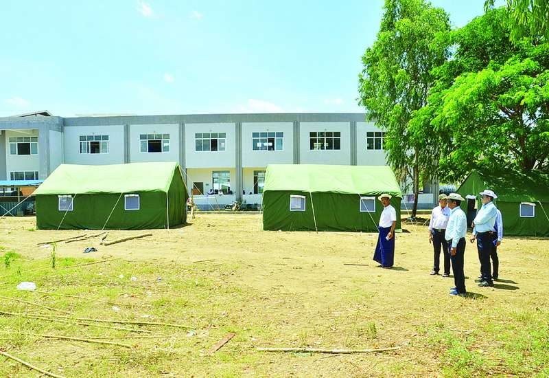 သမဝါယမနှင့်ကျေးလက်ဖွံ့ဖြိုးရေးဝန်ကြီးဌာန ပြည်ထောင်စုဝန်ကြီး ဦးလှမိုးသည် တာဝန်ရှိသူများနှင့်အတူ ဧပြီ ၁၅ ရက် နံနက်ပိုင်းက သမဝါယမနှင့်ကျေးလက်ဖွံ့ဖြိုးရေးဝန်ကြီးဌာနပိုင်မြေနေရာ၌ သမဝါယမဦးစီးဌာနမှ ငလျင်ဒဏ်သင့် အမှုထမ်း ၆၀ နှင့် မိသားစုများ ယာယီနေထိုင်နိုင်ရန် လေးခန်းတွဲတစ်ထပ် အိမ်ရာ အလုံး ၂၀၊ အရာထမ်း ၂၀ နှင့် မိသားစုများ ယာယီနေထိုင်နိုင်ရန် နှစ်ခန်းတွဲ တစ်ထပ်အိမ်ရာ အလုံး ၂၀ တည်ဆောက်မည့်နေရာကိုလည်းကောင်း၊ အသေးစားစက်မှုလက်မှုလုပ်ငန်းဦးစီးဌာနမှ အမှုထမ်း ၂၈ ဦးနှင့် မိသားစုများ ယာယီနေထိုင်နိုင်ရန် လေးခန်းတွဲတစ်ထပ်အိမ်ရာ ခုနစ်လုံး၊ အရာ ထမ်း ၃၂ ဦးနှင့် မိသားစုများ ယာယီနေထိုင်နိုင်ရန် နှစ်ခန်းတွဲ တစ်ထပ်အိမ်ရာ ၁၆ လုံး တည်ဆောက်ရန် ပြင်ဆင်ဆောင်ရွက်နေမှုများကိုလည်းကောင်း ကြည့်ရှုစစ်ဆေးပြီး တာဝန်ရှိသူများအား မေလပထမပတ်အတွင်း ပြီးစီးအောင်တည်ဆောက်ကြရန်မှာကြားသည်။
