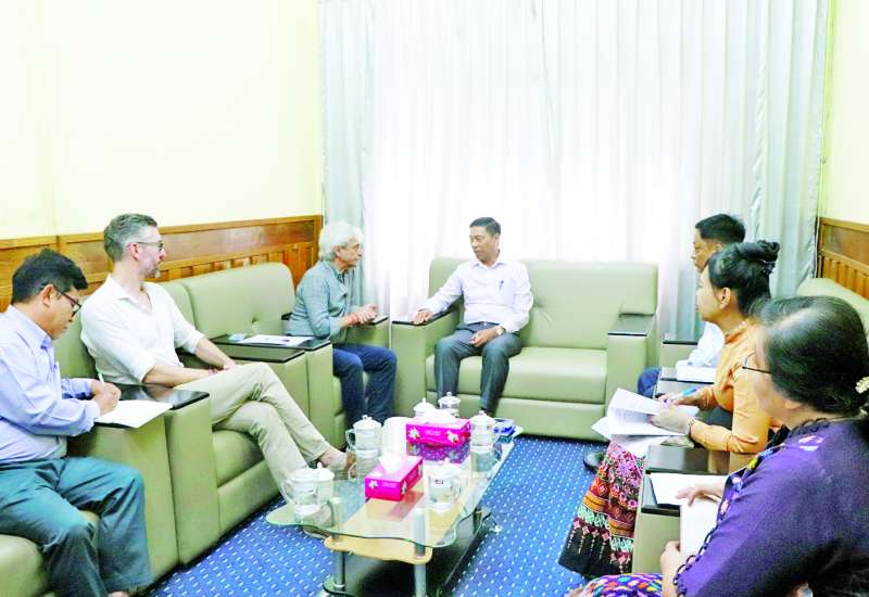 လူမှုဝန်ထမ်း၊ ကယ်ဆယ်ရေးနှင့်ပြန်လည်နေရာချထားရေးဝန်ကြီးဌာန ပြည်ထောင်စုဝန်ကြီး ဒေါက်တာစိုးဝင်းသည် နိုင်ငံခြားရေးဝန်ကြီးဌာန ဒုတိယဝန်ကြီး ဦးလွင်ဦးနှင့်အတူ ကမ္ဘာ့စားနပ်ရိက္ခာအစီအစဉ် (WFP)၏ တာဝန်ခံညွှန်ကြားရေးမှူး Mr. Paolo Mattei ဦးဆောင်သည့် ကိုယ်စားလှယ်အဖွဲ့အား ယနေ့နံနက်ပိုင်းတွင် အဆိုပါ ဝန်ကြီးဌာန၏ သဘာဝဘေးအန္တရာယ်ဆိုင်ရာစီမံခန့်ခွဲမှုဗဟိုဌာန (Disaster Management Center- DMC)၌တွေ့ဆုံရာ တာဝန်ရှိသူများ တက်ရောက်ကြသည်။