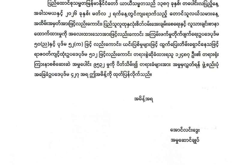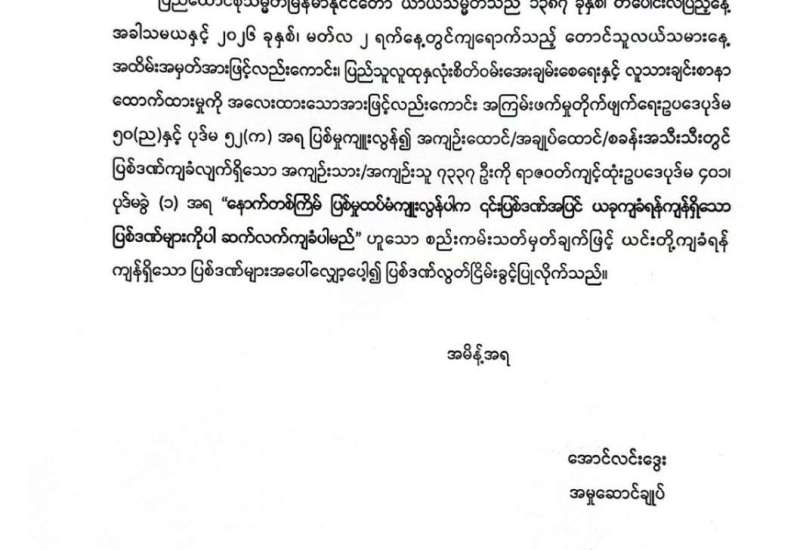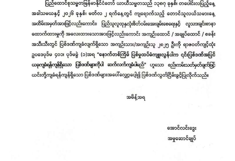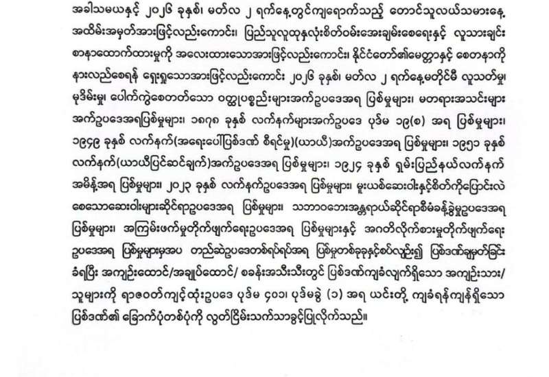 အကြမ်းဖက်မှုတိုက်ဖျက်ရေးဥပဒေပုဒ်မ ၅ဝ(ည)၊ ၅၂(က) ဖြင့် ကြားနာစစ်ဆေးဆဲအမှုများကိုပိတ်သိမ်းခြင်း