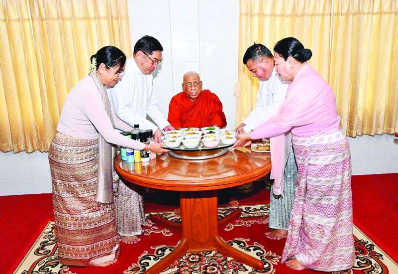 မန္တလေးငလျင်ကြီးကြောင့် ထိခိုက်ပျက်စီးမှုများ ဖြစ်ပေါ်ခဲ့သည့် စစ်ကိုင်းတိုင်းဒေသကြီး စစ်ကိုင်းမြို့၌ တည်ထားပူဇော်သော ရှေးဟောင်းသမိုင်းဝင် ရာဇမဏိစူဠာကောင်းမှုတော်စေတီတော်မြတ်ကြီးအား ဘက်စုံပြုပြင်မွမ်းမံ၍ ရတနာစိန်ဖူးတော်၊ ငှက်မြတ်နားတော်အထွတ်တင်လှူပူဇော်ပွဲ မဟာမင်္ဂလာအခမ်းအနားကို ယနေ့နံနက်ပိုင်းတွင် ကျင်းပပြုလုပ်ရာ နိုင်ငံတော်ဩဝါဒါစရိယသောဠသမ ရွှေကျင်သာသနာပိုင်ဆရာတော်၊ သီတဂူကမ္ဘာ့ဗုဒ္ဓတက္ကသိုလ်များနှင့် သီတဂူဆေးရုံတော်များ၏ အဓိပတိ အဘိဓဇမဟာရဋ္ဌဂုရု အဘိဓဇအဂ္ဂမဟာ သဒ္ဓမ္မဇောတိက ဒေါက်တာဘဒ္ဒန္တဉာဏိဿရ အမှူးပြုသည့် ဆရာတော်၊ သံဃာတော်အရှင်သူမြတ်များ ကြွရောက်ချီးမြှင့်တော်မူကြသည်။