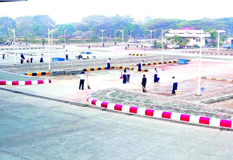 ပို့ဆောင်ရေးနှင့်ဆက်သွယ်ရေးဝန်ကြီးဌာန မြန်မာ့မီးရထားရုံးချုပ် နေပြည်တော်ဘူတာကြီး ရှေ့နောက်ဘေးပတ်ဝန်းကျင်နှင့် ဘူတာတောင်ဘက်နှင့် မြောက်ဘက်ရှိ ယာယီဝန်ထမ်းအိမ်ရာများ၊ ဝန်ထမ်းသက်သာအဖြစ် စိုက်ပျိုးထားရှိသော ငှက်ပျောခြံနှင့် သရက်ခြံပတ်ဝန်းကျင်များ သန့်ရှင်းသာယာရေးနှင့် မီးဘေးအန္တရာယ်ကာကွယ်ရေးအတွက် ယနေ့နံနက်ပိုင်းတွင် မြန်မာ့မီးရထား ရုံးချုပ်မှ အရာထမ်း/အမှုထမ်းများက စုပေါင်းသန့်ရှင်းရေး ဆောင်ရွက်ကြသည်။