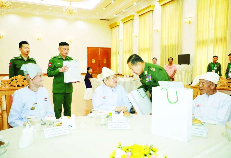 နှစ်(၈၀)ပြည့် တပ်မတော်နေ့စစ်ရေးပြအခမ်းအနားသို့ တက်ရောက်ကြမည့် လွတ်လပ်ရေးမော်ကွန်းဝင်ပုဂ္ဂိုလ် ဒုတိယအဆင့် ၂ ဦး နှင့် တတိယအဆင့် ၁ ဦး စုစုပေါင်း ၃ ဦးတို့အား နိုင်ငံတော်စီမံအုပ်ချုပ်ရေးကောင်စီဒုတိယဥက္ကဋ္ဌ ဒုတိယတပ်မတော်ကာကွယ်ရေးဦးစီးချုပ် ကာကွယ်ရေးဦးစီးချုပ်(ကြည်း) ဒုတိယဗိုလ်ချုပ်မှူးကြီး စိုးဝင်းနှင့် ဇနီး ဒေါ်သန်းသန်းနွယ်တို့က ယနေ့နံနက်ပိုင်းတွင် နေပြည်တော်ရှိ ဘုရင့်နောင်ရိပ်သာဧည့်ခန်းမဆောင်၌ လက်ဘက်ရည်ဝိုင်းဖြင့် တည်ခင်းဧည့်ခံ၍ ဂါရဝပြုတွေ့ဆုံသည်။