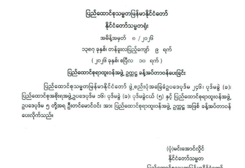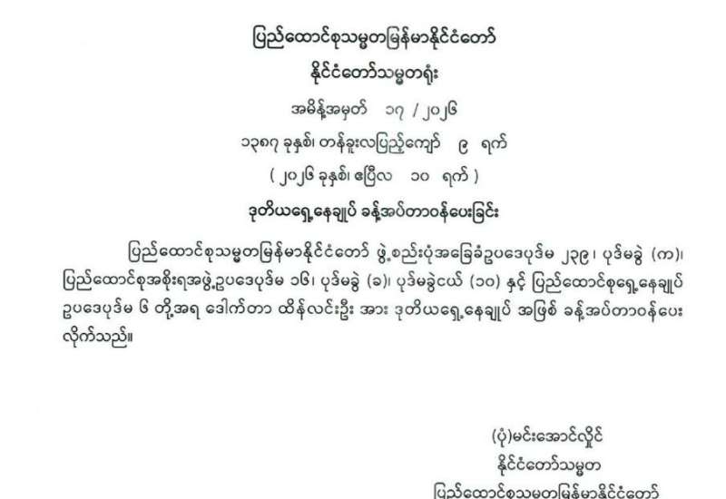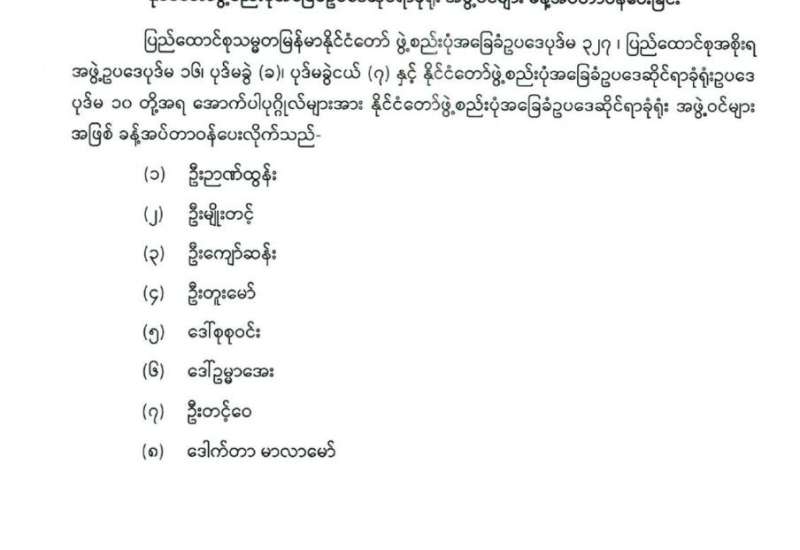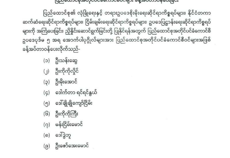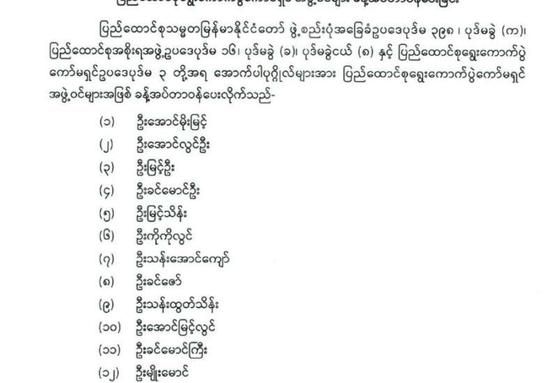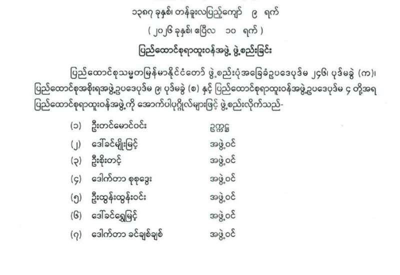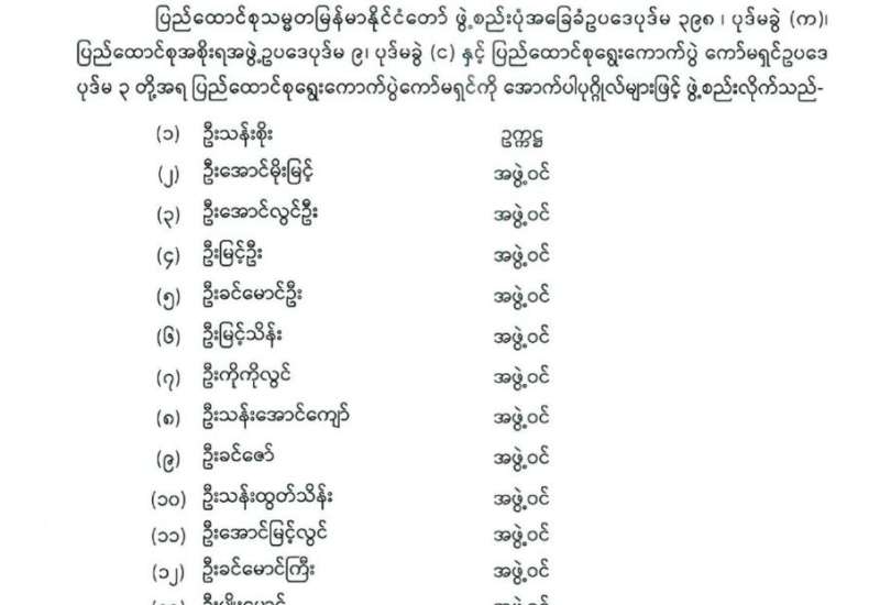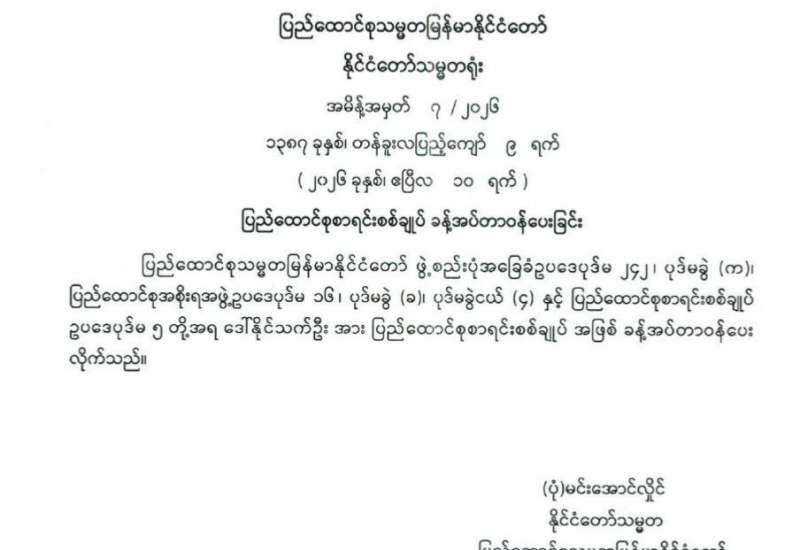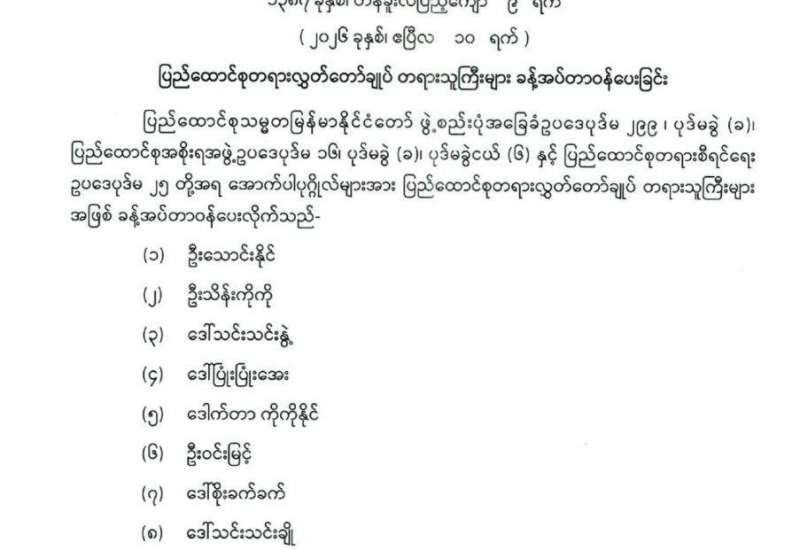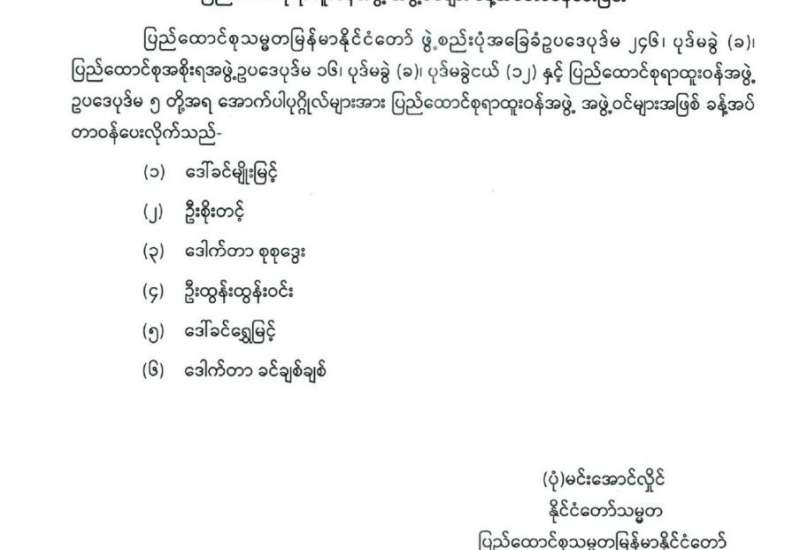 ပြည်ထောင်စုရွေးကောက်ပွဲကော်မရှင် အဖွဲ့ဝင်များ ခန့်အပ်တာဝန်ပေးခြင်း