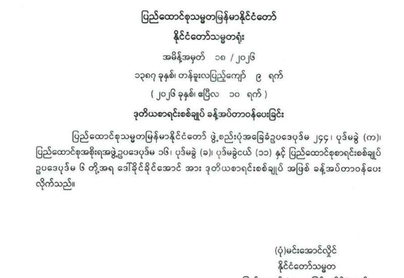 ဒုတိယစာရင်းစစ်ချုပ် ခန့်အပ်တာဝန်ပေးခြင်း
