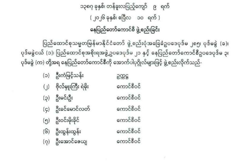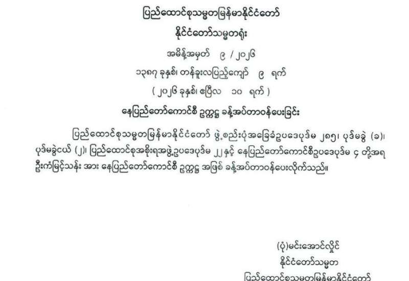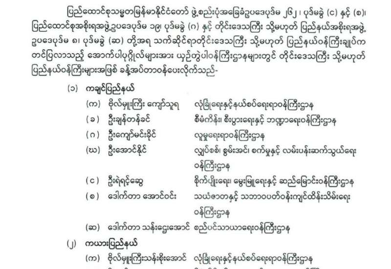 နေပြည်တော်ကောင်စီဥက္ကဋ္ဌ ခန့်အပ်တာဝန်ပေးခြင်း