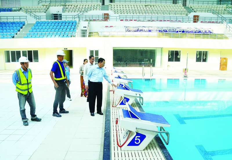 အားကစားနှင့်လူငယ်ရေးရာဝန်ကြီးဌာန ဒုတိယဝန်ကြီး ဦးထိန်လင်းသည် တည်ဆောက်ရေးလုပ်ငန်းများကို တာဝန်ယူဆောင်ရွက်လျက်ရှိသည့် သက်ဆိုင်ရာကုမ္ပဏီမှ တာဝန်ရှိသူများနှင့်အတူ ယနေ့နံနက်ပိုင်းတွင် မန္တလေးငလျင်ဒဏ်ကြောင့် ထိခိုက်ပျက်စီးခဲ့သည့် ဝဏ္ဏသိဒ္ဓိအားကစားကွင်း၊ ရွှေကြာပင်အားကစားကွင်းနှင့် ဒက္ခိဏသီရိမြို့နယ်အားကစားကွင်း ပြန်လည်ပြုပြင်ခြင်းနှင့် တည်ဆောက်ရေးလုပ်ငန်းများ ဆောင်ရွက်နေမှု ကြည့်ရှုစစ်ဆေးသည်။
