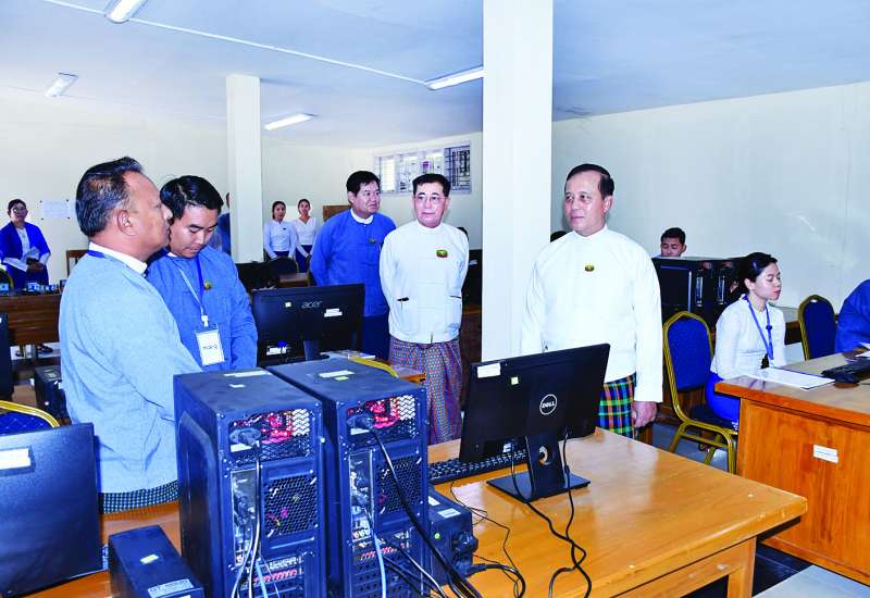 နေပြည်တော်ကောင်စီဥက္ကဋ္ဌ ဦးသန်းထွန်းဦး သည် နေပြည်တော်ကောင်စီဝင်များနှင့်အတူ ယနေ့မွန်းလွဲပိုင်းတွင် ၂၀၂၅ ခုနှစ် တက္ကသိုလ်ဝင်စာမေးပွဲအတွက် ပျဉ်းမနားမြို့နယ်နှင့် လယ်ဝေးမြို့နယ်အတွင်းရှိ စာစစ်ဌာနများတွင် စာမေးပွဲဖြေဆိုခန်းများ ပြင်ဆင်ထားရှိမှုအခြေအနေများကို ကြည့်ရှုစစ်ဆေးသည်။