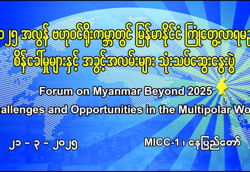 ၂၀၂၅ အလွန်ဗဟုဝန်ရိုးကမ္ဘာတွင် မြန်မာနိုင်ငံကြုံတွေ့လာရမည့် စိန်ခေါ်မှုများနှင့် အခွင့်အလမ်းများ သုံးသပ်ဆွေးနွေးပွဲ
