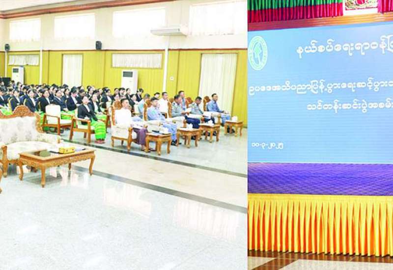 နယ်စပ်ရေးရာဝန်ကြီးဌာန ဥပဒေအသိပညာပြန့်ပွားရေး ဆင့်ပွားသင်တန်းအမှတ်စဉ် (၂) သင်တန်းဆင်းပွဲအခမ်းအနားကို ယနေ့နံနက်ပိုင်းတွင် နယ်စပ်ရေးရာဝန်ကြီးဌာန ဧရာဝတီခန်းမ၌ကျင်းပရာ နိုင်ငံတော်စီမံအုပ်ချုပ်ရေးကောင်စီအဖွဲ့ဝင် နယ်စပ်ရေးရာဝန်ကြီးဌာန ပြည်ထောင်စုဝန်ကြီး ဒုတိယဗိုလ်ချုပ်ကြီး ရာပြည့်၊ ဒုတိယဝန်ကြီး ဗိုလ်ချုပ် ဖြိုးသန့်၊ အမြဲတမ်းအတွင်းဝန်၊ ညွှန်ကြားရေးမှူးချုပ်၊ ဝန်ကြီးရုံးနှင့် ဦးစီးဌာနများမှ အရာထမ်း၊ အမှုထမ်းများ၊ သင်တန်းနည်းပြများနှင့် သင်တန်းသား သင်တန်းသူများ တက်ရောက်ကြသည်။