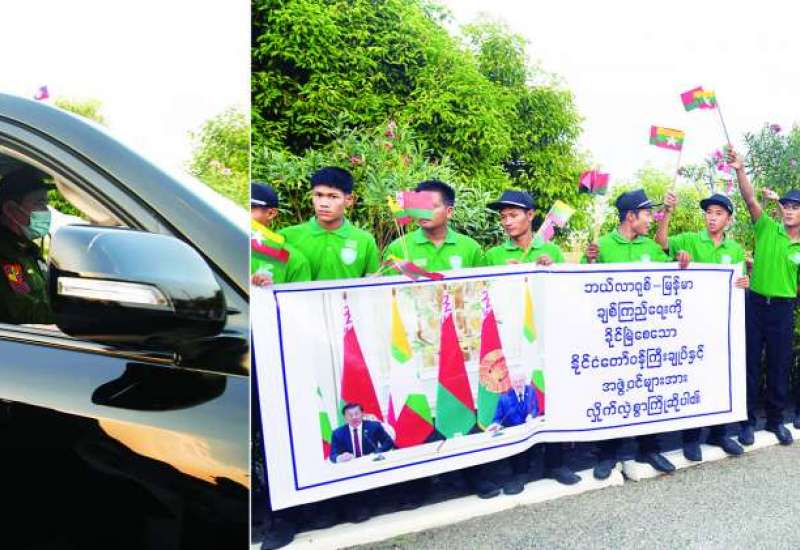 နိုင်ငံတော်စီမံအုပ်ချုပ်ရေးကောင်စီဥက္ကဋ္ဌ နိုင်ငံတော်ဝန်ကြီးချုပ် ဗိုလ်ချုပ်မှူးကြီး မင်းအောင်လှိုင်သည် ရုရှားဖက်ဒရေးရှင်းနိုင်ငံသမ္မတ H.E. Vladimir Vladimirovich Putin ၏ ဖိတ်ကြားချက်အရ ရုရှားဖက်ဒရေးရှင်းနိုင်ငံသို့ တရားဝင်ချစ်ကြည်ရေးခရီးစဉ်အဖြစ်လည်းကောင်း၊ ဘယ်လာရုစ်သမ္မတနိုင်ငံ သမ္မတ H.E. Mr. Alexander Gregoryevich Lukashenko ၏ ဖိတ်ကြားချက်အရ ဘယ်လာရုစ်သမ္မတနိုင်ငံသို့ နိုင်ငံတော်အဆင့် တရားဝင်ချစ်ကြည်ရေးခရီးစဉ်အဖြစ်လည်းကောင်း သွားရောက်ခဲ့ပြီး ယနေ့ဒေသစံတော်ချိန် မွန်းလွဲပိုင်းတွင် ရုရှားဖက်ဒရေးရှင်းနိုင်ငံ နိုဗိုစီဗစ်မြို့ သာမာရှဲဗာလေဆိပ်မှ ပြန်လည်ထွက်ခွာကြရာ နိုဗိုစီဗစ်ဒေသ အုပ်ချုပ်ရေးမှူး မစ္စတာတရာ့ဗနီကော့ဗ်အန်ဒရေ အလက်ဇန်ဒရိုဘစ်ချ်၊ ရုရှားဖက်ဒရေးရှင်းနိုင်ငံဆိုင်ရာ မြန်မာနိုင်ငံ သံအမတ်ကြီး ဦးသစ်လင်းအုန်း၊ မြန်မာကောင်စစ်ဝန်ချုပ်နှင့် တာဝန်ရှိသူများက လေဆိပ်၌ ပို့ဆောင်နှုတ်ဆက်ကြသည်။