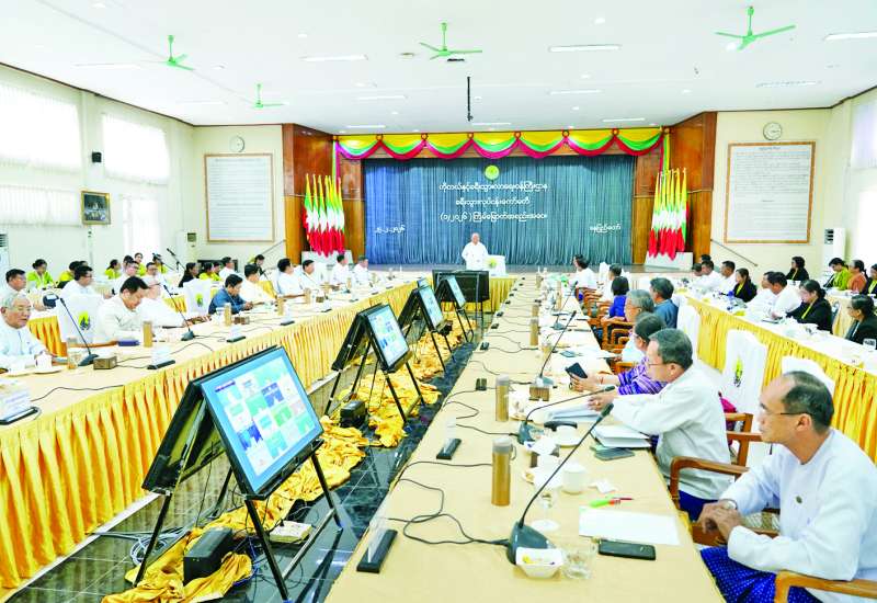 အမျိုးသားပညာရေးမဟာဗျူဟာစီမံကိန်း (၂၀၂၁-၂ဝ၃ဝ) လေ့လာဆန်းစစ်အကဲဖြတ်ခြင်း အညွှန်းဘောင်အကောင်အထည်ဖော်ဆောင်ရွက်ခြင်းဆိုင်ရာ အလုပ်ရုံဆွေးနွေးပွဲကို ယနေ့နံနက်ပိုင်းတွင် နေပြည်တော်ပညာရေးဝန်ကြီးဌာန ရုံးအမှတ် (၁၃) အစည်းအဝေးခန်းမ၌ ကျင်းပရာ ပညာရေးဝန်ကြီးဌာန ပြည်ထောင်စုဝန်ကြီး ဒေါက်တာချောချောစိန်၊ ဒုတိယဝန်ကြီး ဒေါက်တာဇော်မြင့်နှင့် ဦးနေမျိုးလှိုင်၊ ညွှန်ကြားရေးမှူးချုပ်များ၊ Naypyitaw State Academy ပါမောက္ခချုပ်နှင့် ဌာနဆိုင်ရာတာဝန်ရှိသူများ တက်ရောက်ကြသည်။